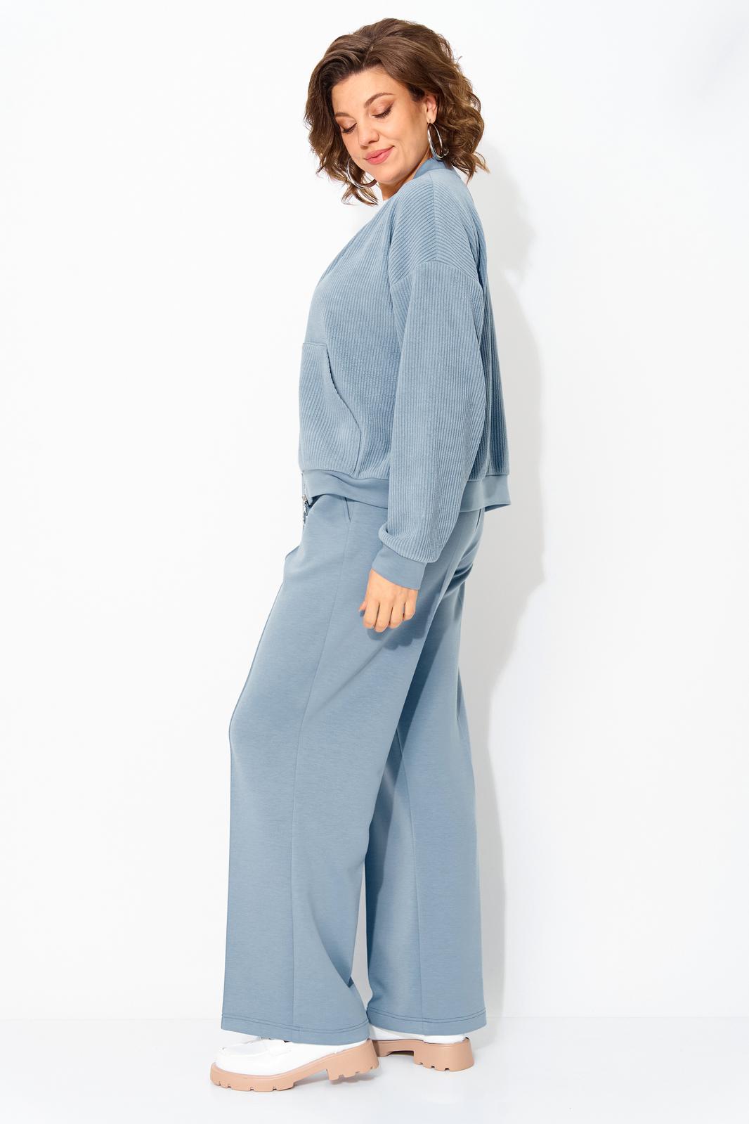 Этот костюм отлично садится на большие размеры и плюс сайз, подчеркивая достоинства фигуры и скрывая лишнее.