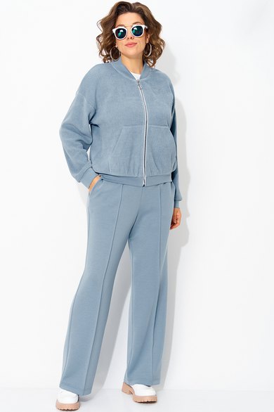 Эффектный и стильный прогулочный трикотажный костюм, состоящий из бомбера и брюк, который отлично подойдет в повседневной носке и загородного отдыха! Модель жакета-бомбера выполнена из трикотажного штрукса! Изделие свободного силуэта, с длинным рукавом на спущенном плечевом поясе. Застежка центральная на молнию. По низу рукава и низу изделия идет мягкая планка из отделочной ткани. Бомбер с накладными карманами по переду. В комплекте брюки, средней посадки, прямго покроя. Брюки с застроченными кантами по переду и боковыми карманами в швах. Пояс в брюках притачной на круговой резинке.