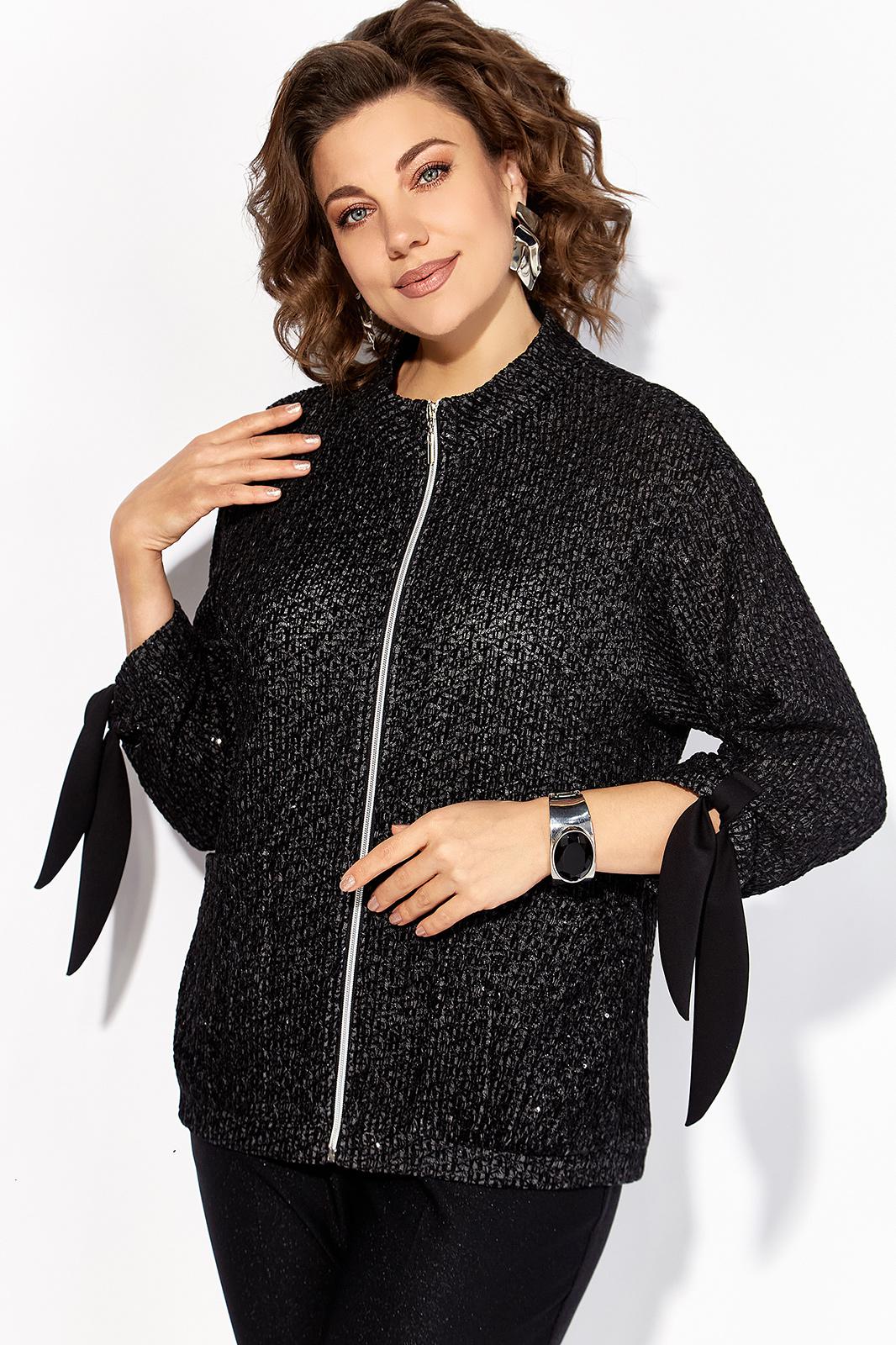 Эффектный, нарядный облегченный жакет, выполнен из вязанного трикотажа с эффектом легкого мерцания. Модель свободного силуэта, с рукавом длиной ¾-ти на спущенном плечевом поясе. Горловина обработана полулежащей стойкой. Застежка центральная на молнию. По полочке расположены аккуратные накладные карманы. Низ изделия оформлен притачной планкой. Изюминкой данной моделям служит необычные паты по рукаву с завязкой в виде банта. Этот вязанный трикотажный жакет - идеальный вариант для создания стильного и привлекательного романтического образа! Мягкий и нежный материал делает его очень приятным на ощупь, теплым и уютным, а легкое мерцание придает свою изюминку. Отлично сочетается с классическими прямыми брюками из базовой коллекции от бренда Лилиана!