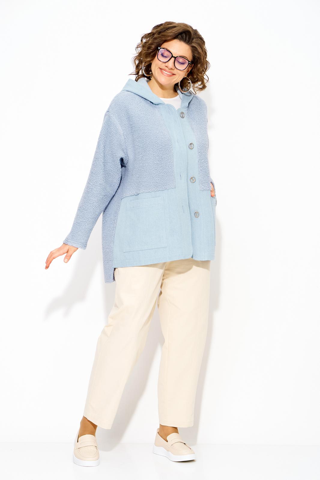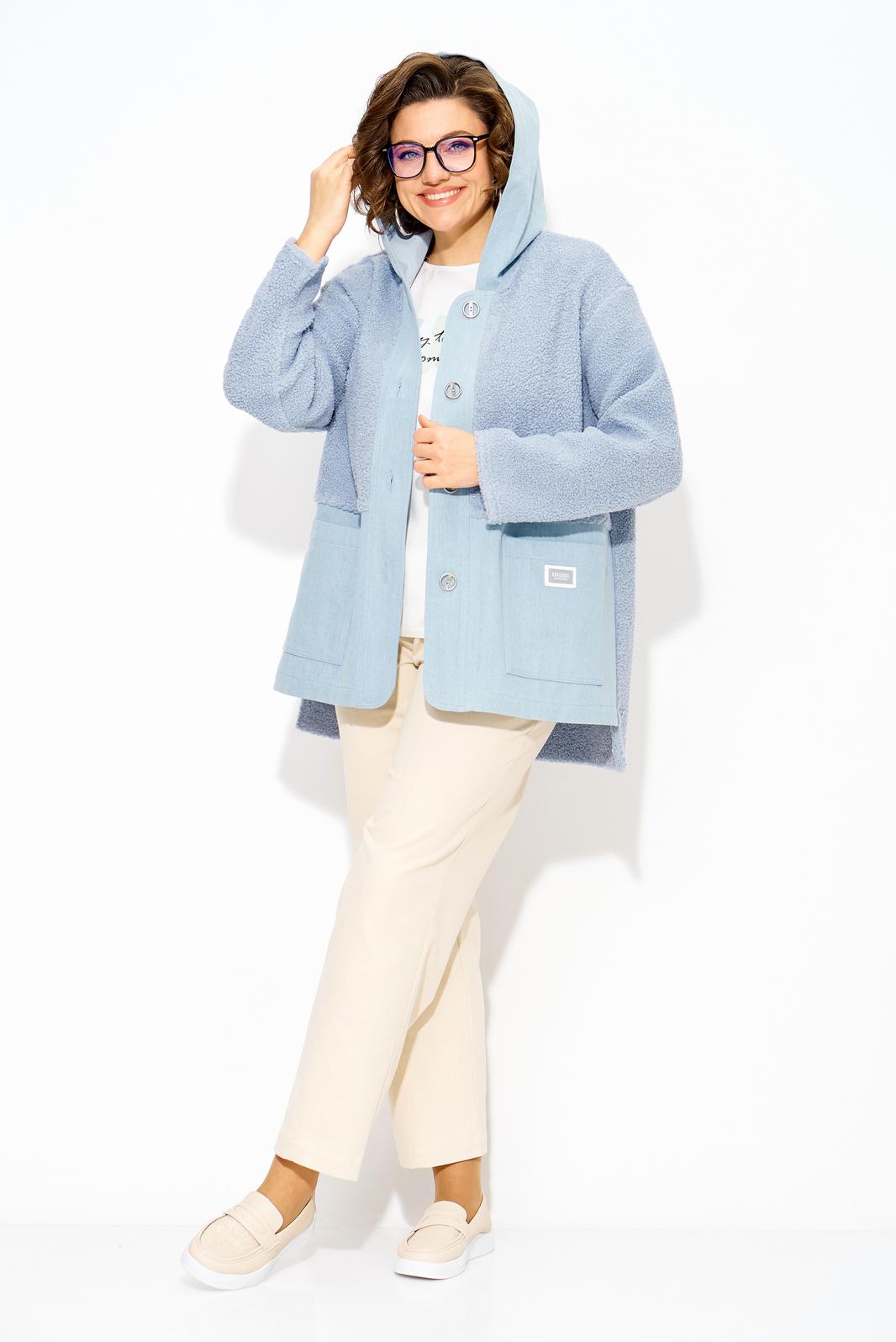 Женский джинсовый жакет- ветровка больших размеров с капюшоном — это стильный и универсальный элемент гардероба, который идеально подходит для создания модных образов в любое время года. Комбинированный джинсовый жакет-ветровка с капюшоном, выполнен из 100% хлопка с добавлением трикотажа с меховым эффектом «Тэдди». Модель свободного силуэта, с длинным рукавом на спущенном плече. Застежка центральная, на петли и пуговицы на декоративную планку. По полочке расположены накладные карманы. Удобный объемный капюшон защитит вас от ветра и холода в непогоду.