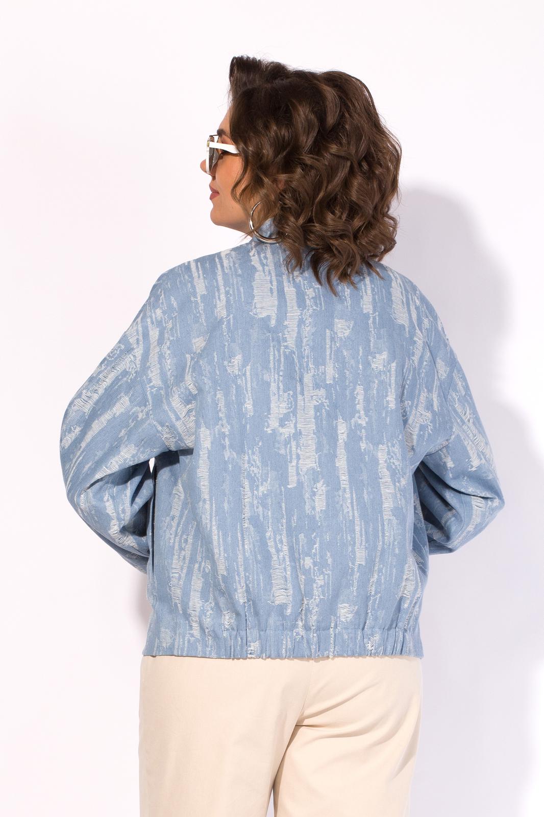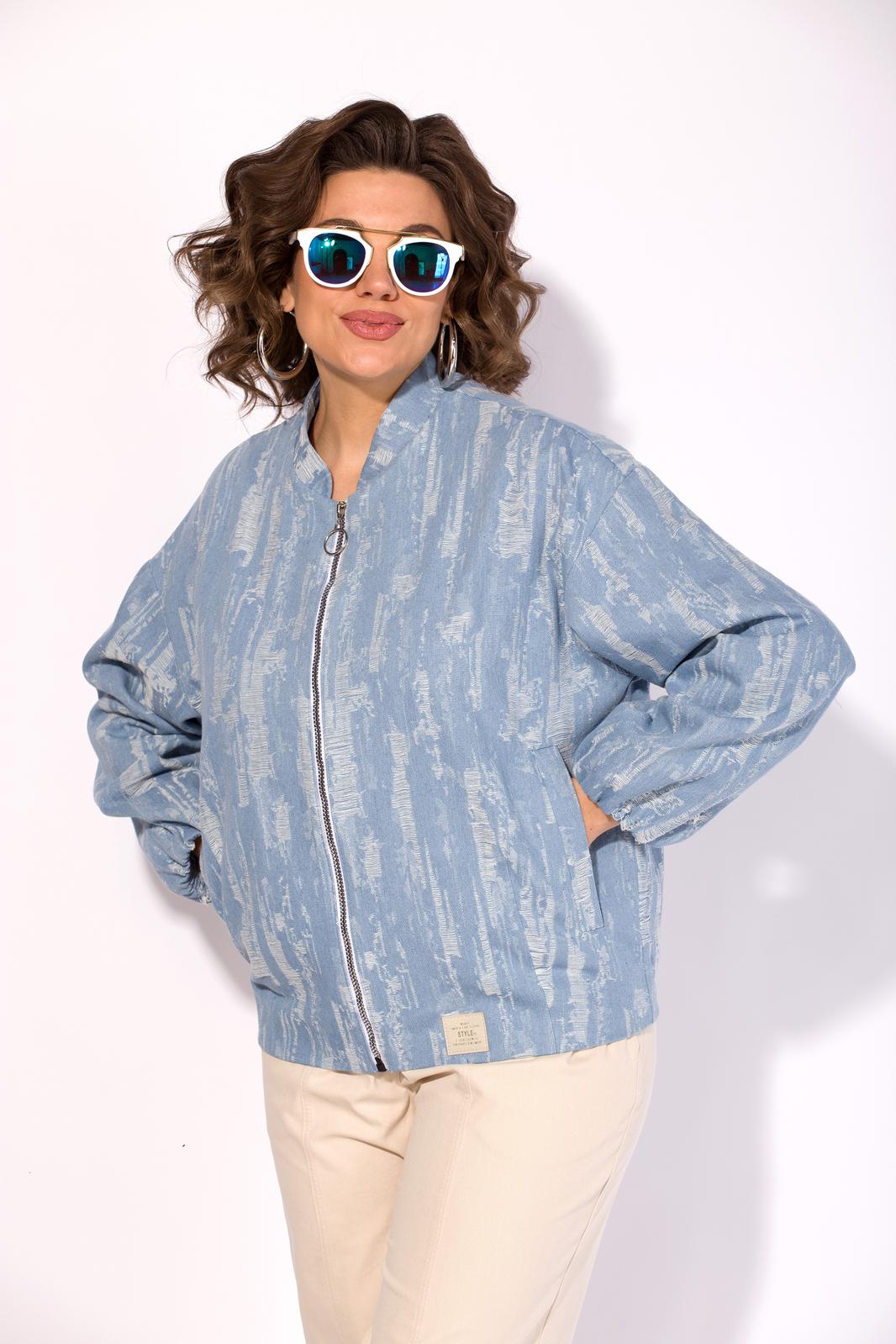 Женский джинсовый жакет, по типу «бомбера» из 100% хлопка в голубом цвете - стильный и экологичный выбор для вашего гардероба! Это универсальный демисезонный жакет на металлической молнии идеально подойдет как для повседневных образов, так и для особых случаев. Объемный крой и широкие рукава, присборенные по низу подчеркивают ниспадающий силуэт куртки в стиле кейп. Модель с функциональными прорезными карманами, воротник оформлен небольшой стойкой, защищает от непогоды. По спинке модель имеет резинку, для более комфортного прилегания. Модель на подкладке.