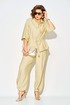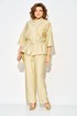 Брючный костюм от бренда «Лилиана»- это идеальный выбор для комфортного и стильного образа в весенне-летнее время года. Сшит из вискозного полотна, он приятен к телу и позволяет коже дышать. Модель выполнена в свободном оверсайз покрое, что обеспечивает максимальный комфорт и свободу движений. Блузон со спущенной линией плеча и рукавом длиной 3/4ти с манжетами на отворот. Воротник свободная стойка; застежка центральная на металлическую молнию. По талии расположена кулиска со шнуровкой для более комфортного прилегания. По бокам блузона предусмотрены разрезы. Лиф украшает абстрактная печать-накат с золотым напылением. Брюки в костюме средней посадки, на притачном поясе с круговой резинкой. Модель с боковыми карманами. По низу брюк предусмотрена утяжка, благодаря ей брюки трансформируются в модные «султанки» – хит весенне-летнего сезона 2026 года!