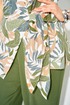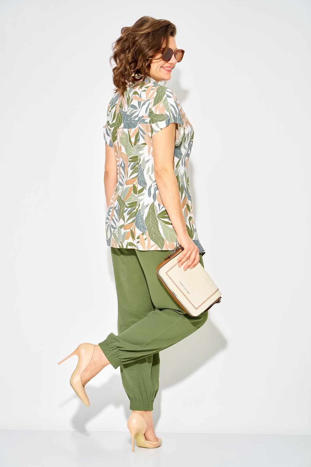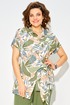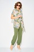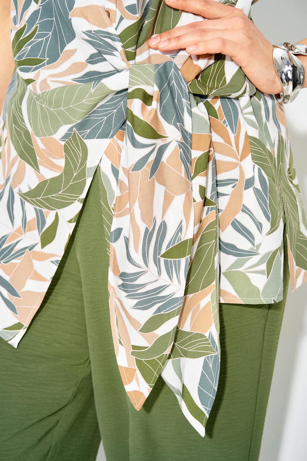 Яркий тропический дизайн блузки делает образ выразительным и молодежным. Ткань костюма дышащая и легкая, что особенно важно для летнего сезона.