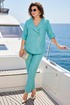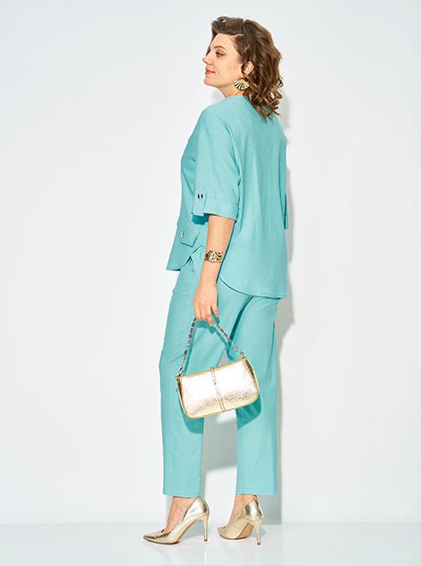 Льняной женский брючный костюм прекрасен для весеннего и летнего гардероба. Изготовлен из льна с добавление хлопка. Костюм состоит из облегченного жакета по типу косухи и брюк. Жакет со спущенной линией плеча, с рукавом длиной ¾-ти на подворотом с патой. Вырез горловины круглый, с ассиметричной застежкой на металлическую молнию. По полочке расположены накладные клапаны. Низ спинки чуть длинее полочки. В комплекте брюки со средней посадкой. На притачном поясе с круговой резинкой. Брюки слегка заужены к низу с боковыми карманами. Этот костюм с брюками станет прекрасным выбором для тех, кто ценит стиль и комфорт, а также желает быть на пике модных трендов 2026 года. Легкая натуральная ткань и свободный крой создают атмосферу уюта и непринужденности, позволяя вам оставаться в центре внимания в любых ситуациях.