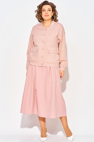 Костюм жакет-бомбер с юбкой — стильный и трендовый комплект, который идеально подойдёт для повседневной носка весны и летом! В комплект входит жакет-бомбер свободного кроя, с мягким воротником округлой формы с застежкой на пуговицы. Низ присборен на планку; имеются накладные карманы с клапаном. Жакет выполнен из мягкого, уютного трикотажа с жаккардовым теснением. В комплект входит юбка длиной миди А-силуэта на притачном поясе с резинкой. По переду заложены складки, имеются боковые карманы. Пикантность образу придает разрез по центру юбки. Застежка – юбочная тесьма-молния по центральному шву спинки. Идеален для женщин, девушек и подростков, которые ценят комфорт, свободу движений и универсальность. Такой модный костюм станет отличным выбором как для повседневных образов, так и для встреч, прогулок и мероприятий.