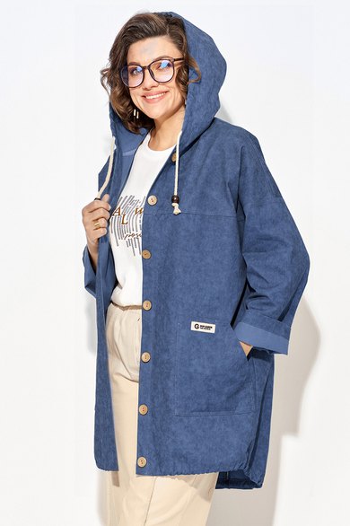 Женская джинсовая парка-ветровка, выполнена из 100% хлопка с эффектом водоотталкивающей пропитки. Удлиненная джин совка силуэта оверсайз очень практична и удобна, смотрится необычно и элегантно. Модель с объемным капюшоном является очень популярной в предстоящем сезоне. Застежка центральная на петли и пуговицы. Рукав длинный на спущенном плечевом поясе обеспечивает идеальную посадку по фигуре. По полочке расположена кокетка и накладные карманы с отделочными строчками. Спинка с центральным швом, переходящим в разрез. Низ изделия фигурный с утяжкой на шнуровку с наконечниками.