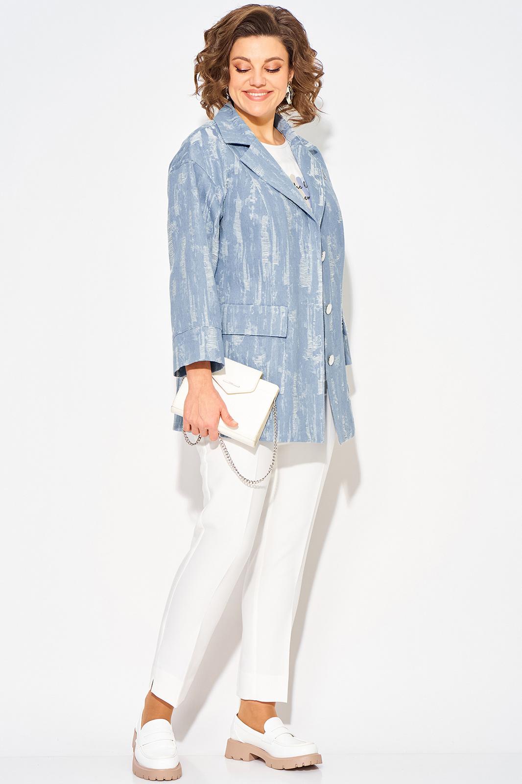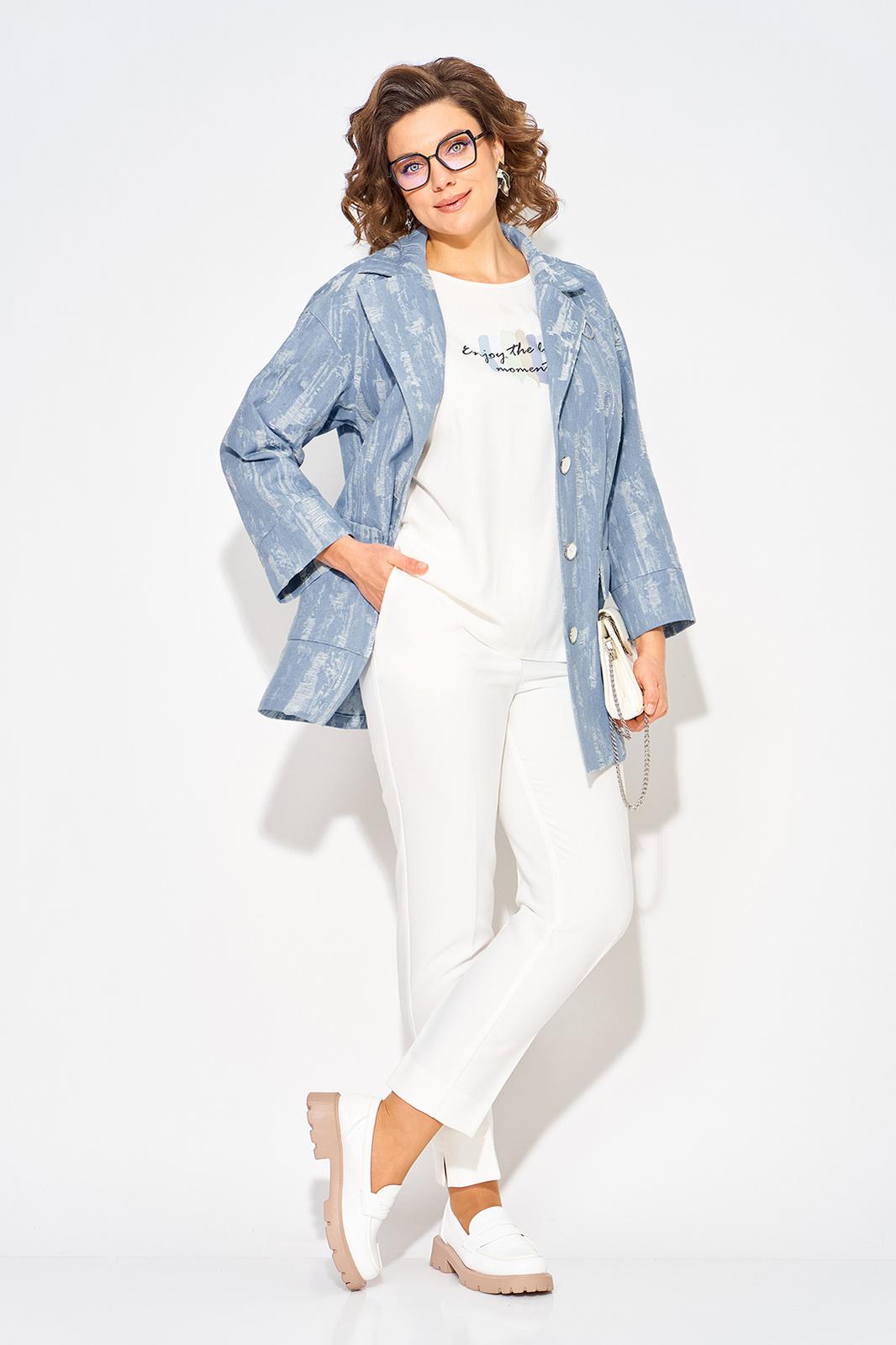 Джинсовый женский жакет идеальный выбор для создания стильного весенне-летнего образа 2026 года. Современный, светлый дизайн с эффектом гранжа придает свою изюминку изделию. Модель свободного силуэта, на спущенном плечевом поясе. Воротник отложной, английского типа с подбортом. Застежка центральная на петли и пуговицы. По полочке и спинке расположены продольные рельефы для комфортного прилегания. Спереди расположены накладные карманы с клапаном.