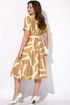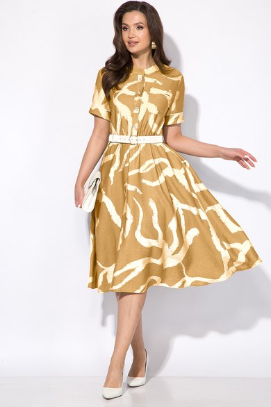 Летящее весенне-летнее платье с коротким рукавом, отрезное по талии. Пышная юбка полу солнце и создает по-девичьи трогательный и мечтательный образ. Застежка с обработанными планками на петли и пуговицы до линии талии. На лифе расположен ассиметричный накладной карман. Вырез горловины округлый, на плоско лежащей стойке. Платье с карманами. По линии талии предусмотрена резинка для комфортного прилегания. В комплекте пояс из эко-кожи в тон изделия.