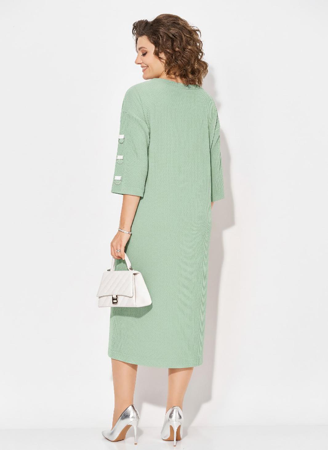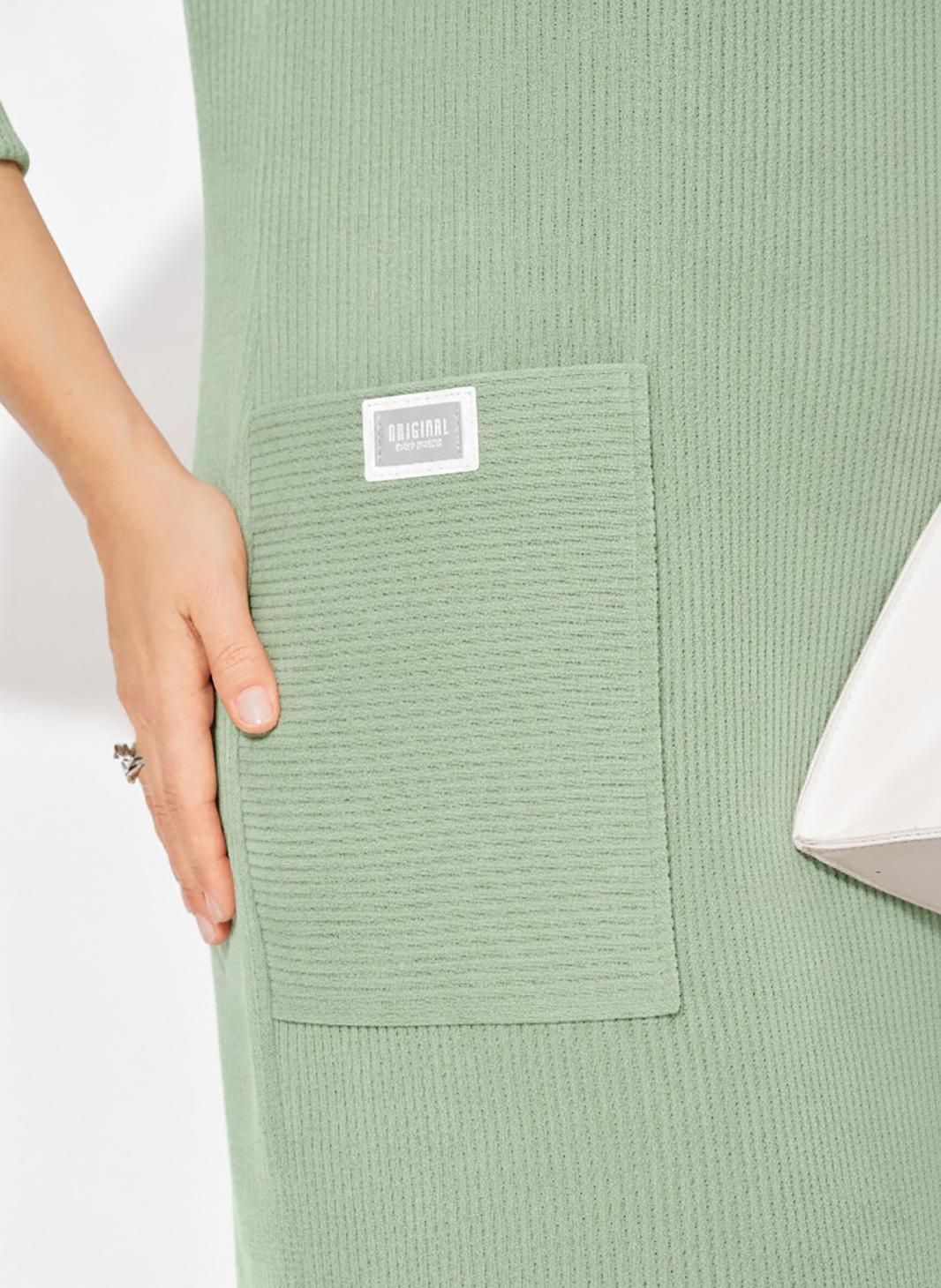 Эффектное платье выполнено из трикотажного штрукса, создано для тех, кто ценит комфорт в повседневной жизни. Модель полуприталенного силуэта со спущенной линией плеча. Рукав длиной3/4-ти украшает ряд декоративных полуколец. Вырез горловины округлый, на мягкой планке. Полочка с отрезной кокеткой и ассиметричным рельефом, переходящим в разрез на свободу движения. Ассиметричный накладной карман украшает декоративная нашивка.