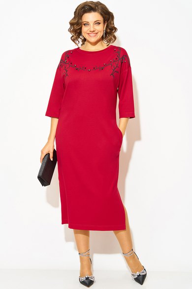 Трикотажное платье алого цвета подчеркнет Вашу женственность и добавит образу смелости! Материал, из которого выполнена модель - мягкий, комфортный и теплый! Силуэт платья прямого кроя, с рукавом длиной ¾-ти на спущенном плечевом поясе. Вырез горловины округлый, на мягкой планке. По бокам расположены разрезы на свободу движения. Изюминка данной модели- очаровательная печать накат с мерцающим эффектом украшенная бусинами и жемчугом. Такое платье можно носить с высокими сапогами, батальонами и даже с туфлями на каблуке. Добавьте к нему крупную бижутерию, кожаный ремень или перчатки - и создайте по истине элегантный и стильный образ! Длина по спинке – 115 см, рукав – 35 см.