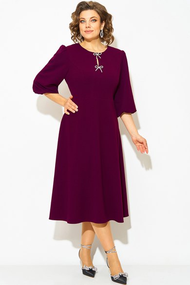 Волшебное и неповторимое - это женское платье с округлым вырезом горловины, созданное талантливым дизайнером олицетворяет элегантность и стиль. Выполненное из трикотажного крепового материала, это платье обеспечивает комфорт и свободу движений. Модель отрезная по линиям талии, с продольными рельефами по полочке. Юбка расклешена к низу – полу солнце. Эффектный рукав-фонарик длиной ¾-ти, присборен по окату и поставлен на трикотажную подкладку. Небольшая капелька по лифу крашена съёмными брошами в виде банта. Застежка – потайная тесьма-молния по спинке. Длина по спинке – 115 см, рукав – 50 см.