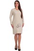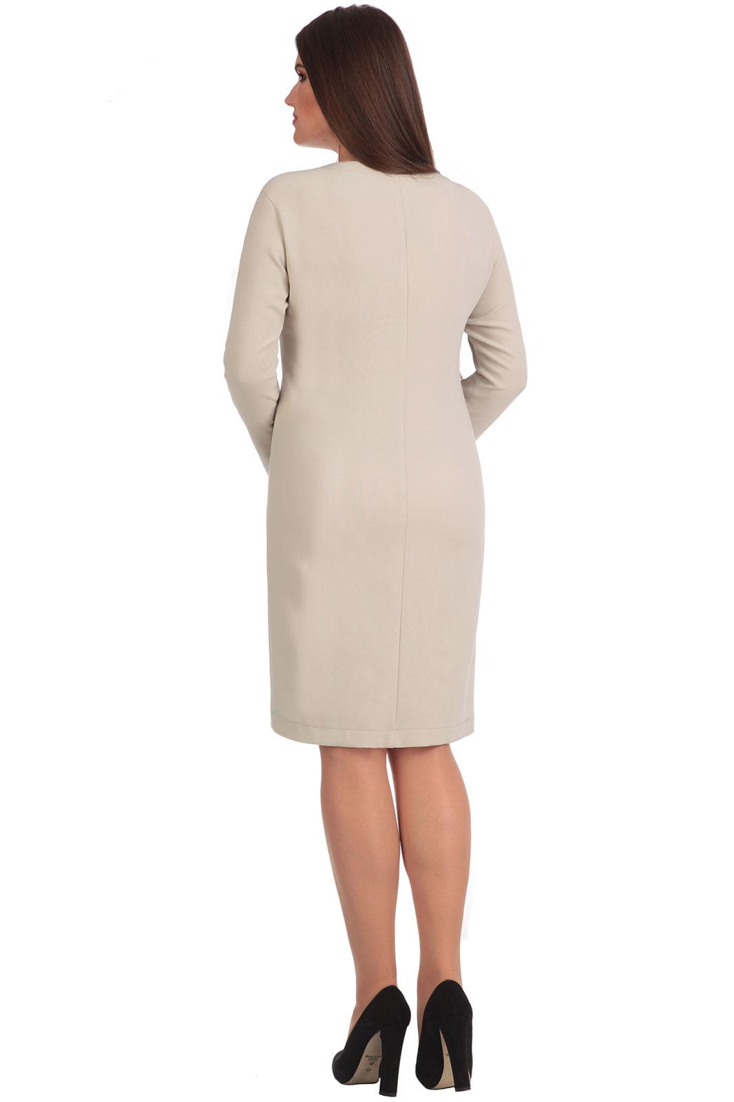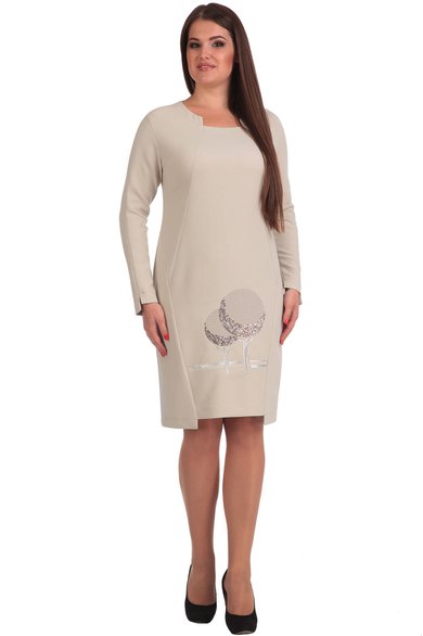 Повседневное платье прямого силуэта. Перед с наклонными рельефными швами. Горловина фигурной формы. На переде расположена вышивка. Низ изделия разного уровня. Спинка со средним швом. Рукав втачной рубашечного типа. Длина 99 см.