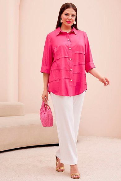 Стильная блузка-рубашка с застроченными складками и металлическими пуговицами отлично впишется в ваш гардероб, легко сочетать с другими вещами создавая стильные и современные образы , подходит для шпилек и обуви на плоском ходу. Рубашка прямого силуэта свободного кроя с отрезной планкой и центральной застежкой. Стильный акцент на золотые пуговицы завершает весь образ. Перед оформлен нагрудными вытачками из проймы и ассиметричными складками, спинка с горизонтальной кокеткой и встречной складкой. Линия плеча приспущена, рукав с отложной манжетой с отворотом.