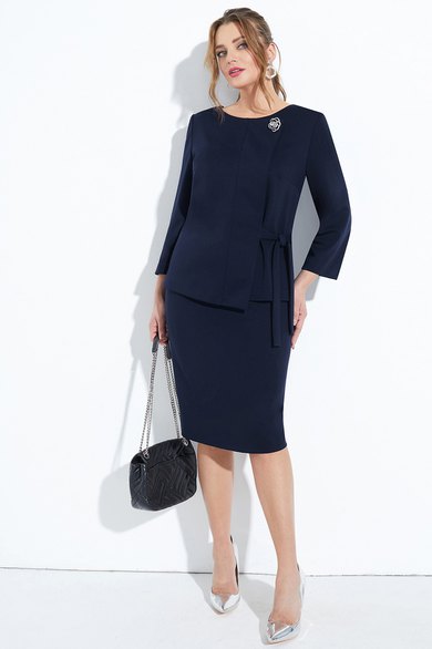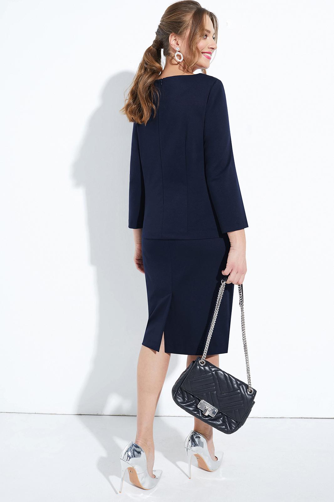Стильный трикотажный комплект состоит из свитшота имитация жакета со съемной брошью и юбки. Отличный вариант для ценителей минимализма комфорта и практичности. Свитшот полуприлегающего силуэта с округлым вырезом и имитацией запаха по переду украшен съемной брошью. Перед оформлен нагрудными вытачками из проймы, по бокам разрезы. Спинка со средним швом и талиевыми вытачками, застежка на потайную молнию в среднем шве спинки. Рукав втачной. Юбка карандаш с отрезным поясом по бокам на резинке , застежка на пуговицу и потайную молнию в среднем шве спинки, по низу юбки шлица.