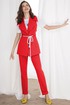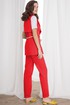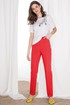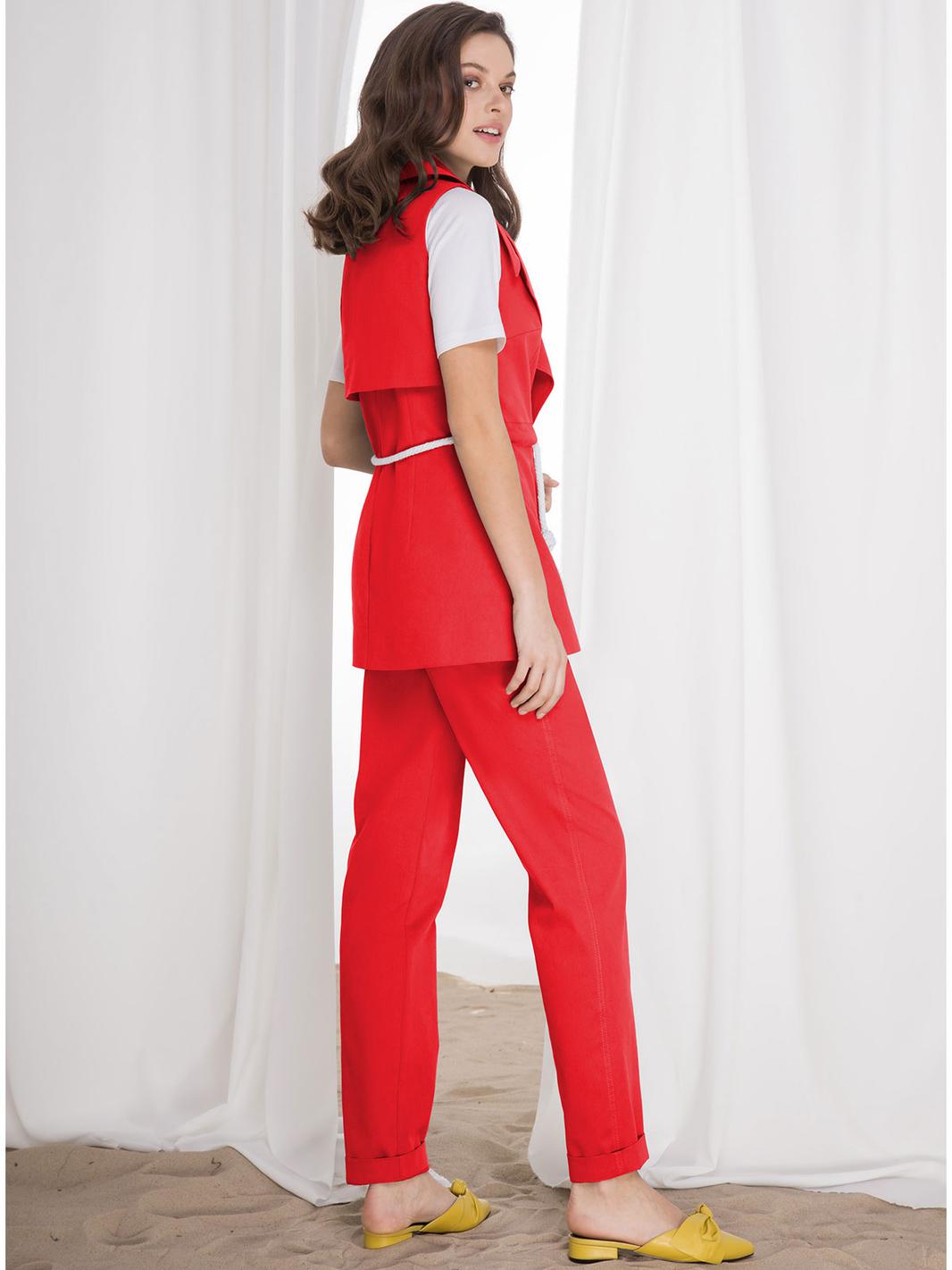 Жилет+брюки+майка. Только женщина способна укротить пиджак и позаимствовать его ради собственных модных интересов в том случае, если обрежет рукава. Безрукавные пиджаки либо жилеты в костюмном стиле - явный и устойчивый тренд современности. И мы предлагаем такой комплект, состоящий из жилета, майки и брюк. Жилет удлиненный, полуприлегающего силуэта, воротник пиджачного типа, на застежку - две потайные кнопки. По переду нагрудные и талевые вытачки, а также кулиса, переходящая на спинку и расположена выше линии талии, которая несет в себе, как декоративный элемент, так и для фиксации пояса. По спинке средний шов, талиевые вытачки, отлетная кокетка. Майка из трикотажного нежного полотна, с круглым вырезом горловины на притачной планке и втачным укороченным рукавом. На майке стильная дизайнерская печать. Брюки прямого фасона, немного заужены книзу. В боковых швах округлые функциональные карманы, застежка на молнию и петлю-пуговицу. На задней половинке брюк кокетка и талевая вытачка, выходящая из бокового шва. Брюки на притачном поясе. на уровне талии. Комплект можно носить как с поясом так и без него.