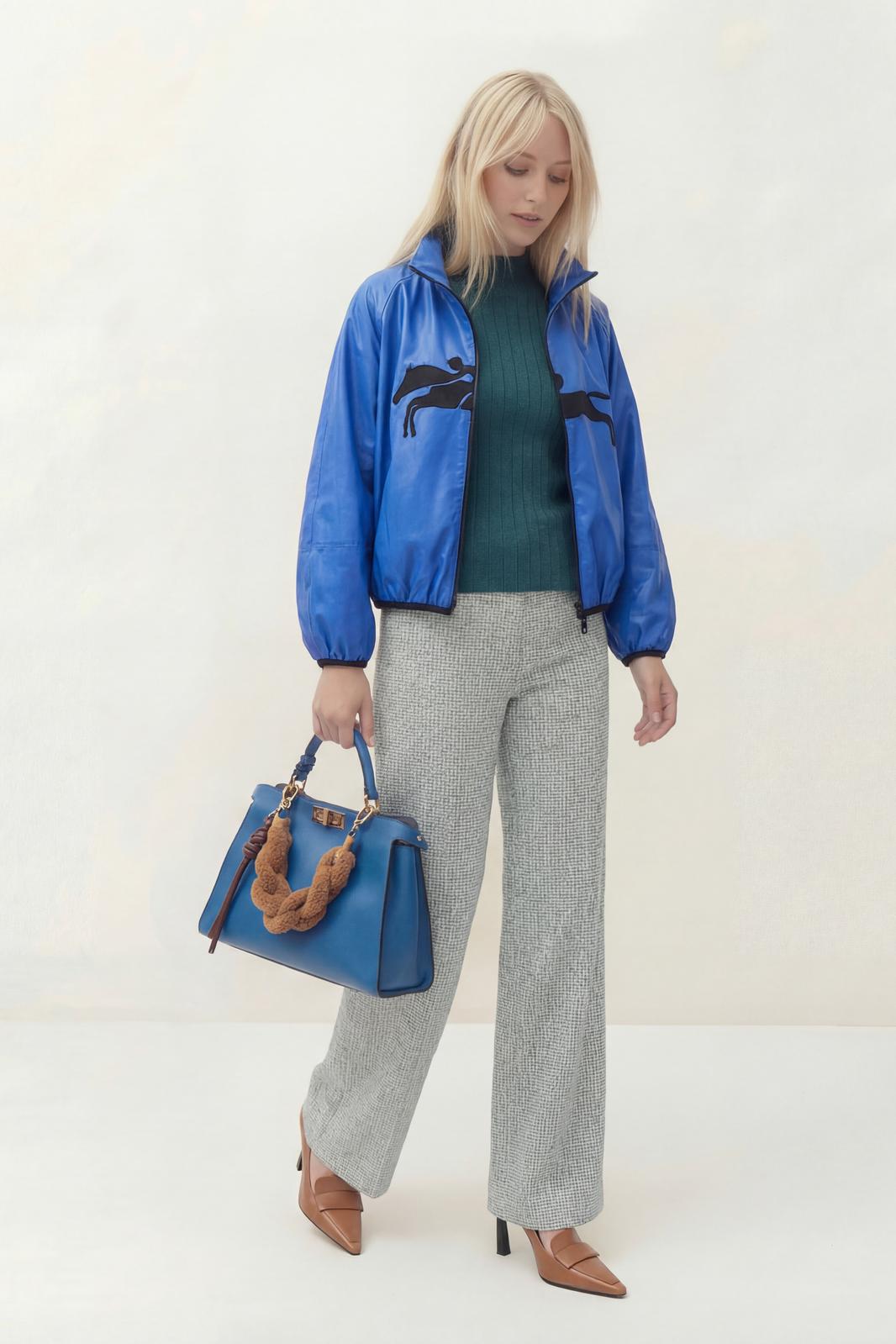 Куртка свободного силуэта из экокожи, на подкладке. Рукав реглан 3/4, объёмный с подрезом в области локтя, низ у рукава сосборен на эластичную тесьму. По горловине воротник стойка, застёжка на молнию. По переду аппликативная вышивка из экокожи, низ куртки сосборен на эластичную тесьму.