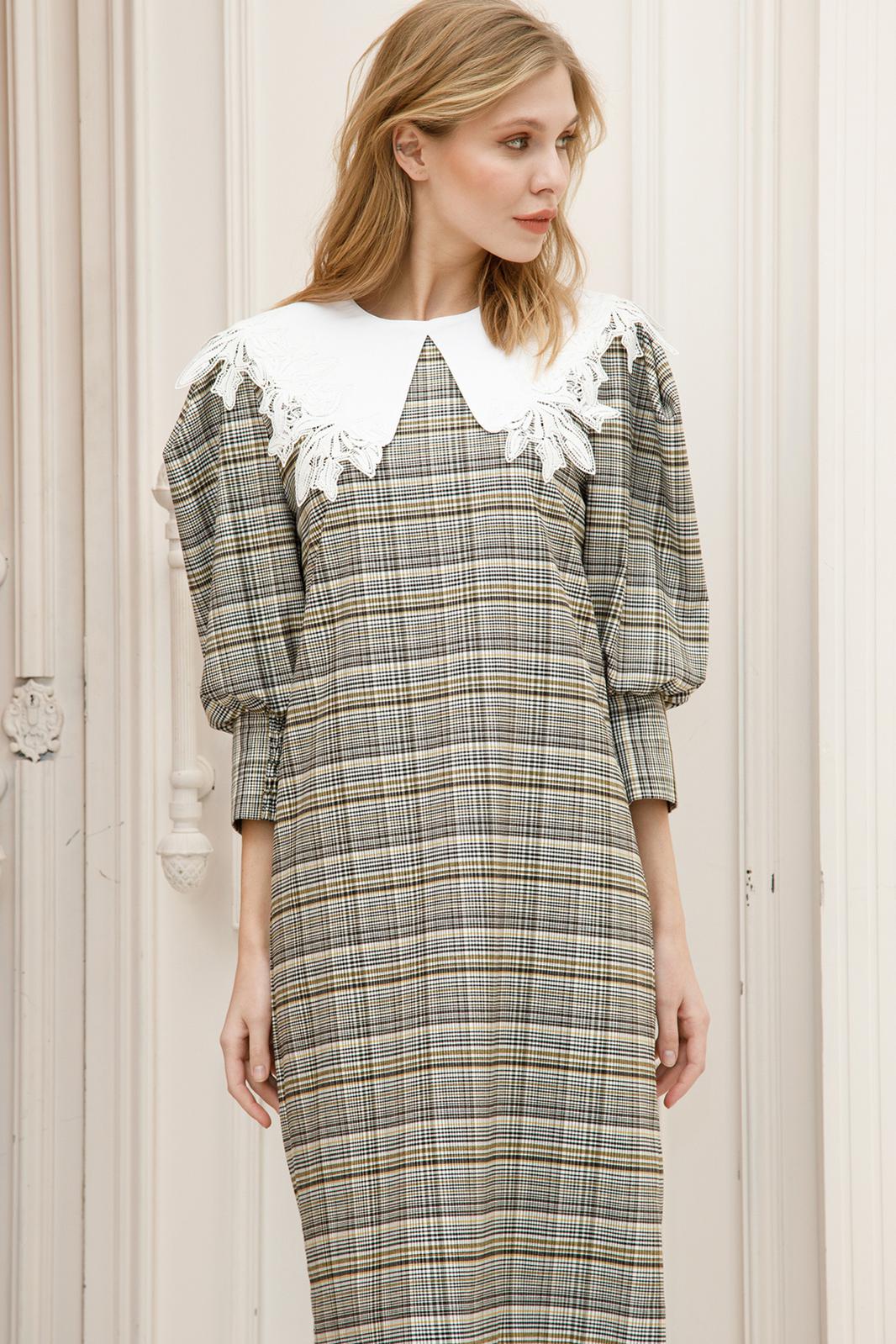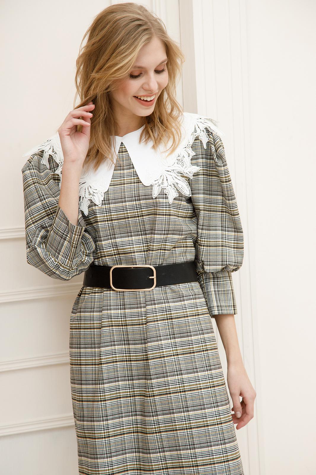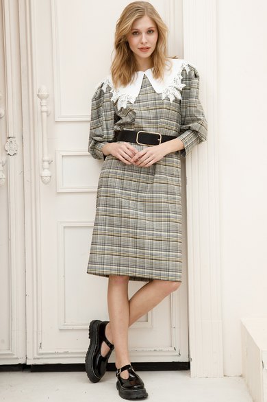 Платья с отложным воротником — модная покупка этого сезона. Чтобы поддержать модное веяние, в весенний период мы предлагаем наше видение стильного платья: с акцентными манжетами, объемными рукавами и, конечно,фактурным воротником.Платье свободного кроя выполнено из плательной ткани дизайна«клетка». По переду округлый вырез горловины, на спинке по горловинепрорезнаязастёжка «капелька» на навесную петлю и пуговицу. Рукав втачной, объёмный, со встречными складками в высшей части рукава. По низу рукав на сборку и притачную манжету, в локтевой части манжеты вшита деталь, собранная на резинки, для удобства и комфорта во время носки. К платью прилагается съёмный воротник, который выполнен из хлопковой ткани с ажурным кружевом, с застёжкой на навесную петлю и пуговицу. Воротник оригинально смотрится и прекрасно подходит к нашему платью. Также он может стать частью вашей рубашки или свитера, преобразив их до неузнаваемости. Пояс также входит в комплект. Смелым модницам стоит обратить внимание на модели с воротниками, ведь они используются в качествеглавногоакцента всего образа в этом сезоне.