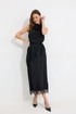 Ассиметричная блузка полуприлегающего силуэта из струящейся ткани. Горловина цельнокроеная. По низу декоративная тесьма( кружево). По низу в боковом шве разрез. Пояс-шнурок из основной ткани идет в комплект.