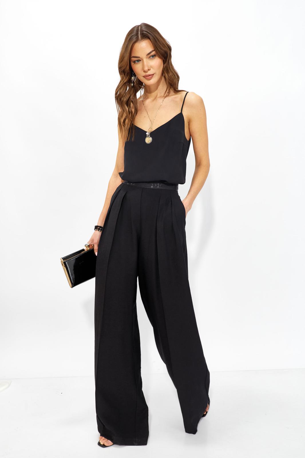 Базовый топ в бельевом стиле из струящейся ткани прямого силуэта с V-образным вырезом на тонких регулируемых бретелях. Его можно носить отдельно или в многослойных образах.