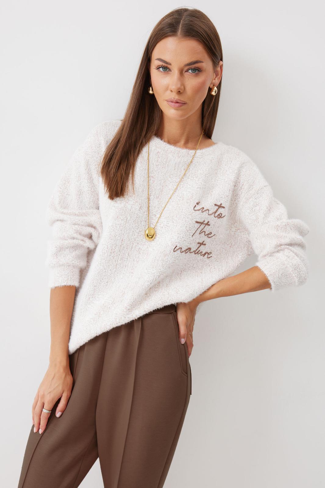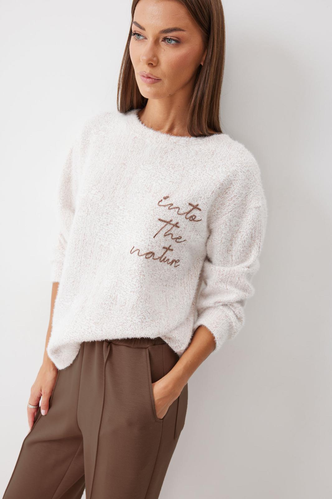 Джемпер прямого силуэта из комфортного трикотажного полотна. Горловина округлая. Рукав со спущенной линией плеча, по низу манжета. По низу джемпера в боковых швах разрезы. По переду дизайнерская вышивка. Обращаем ваше внимание, что фурнитура может отличаться от фото.