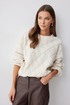 Укороченный джемпер прямого силуэта из трикотажного полотна. Горловина округлая. Рукав со спущенной линией плеча, по низу резинка. По низу джемпера резинка.