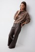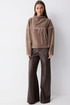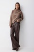 Джемпер прямого силуэта из трикотажного полотна с фигурным низом. Горловина цельнокроеная стойка. Рукав со спущенной линией плеча, удлиненный. Джемпер со смещенным боковым швом. По переду джемпера дизайнерская вышивка.