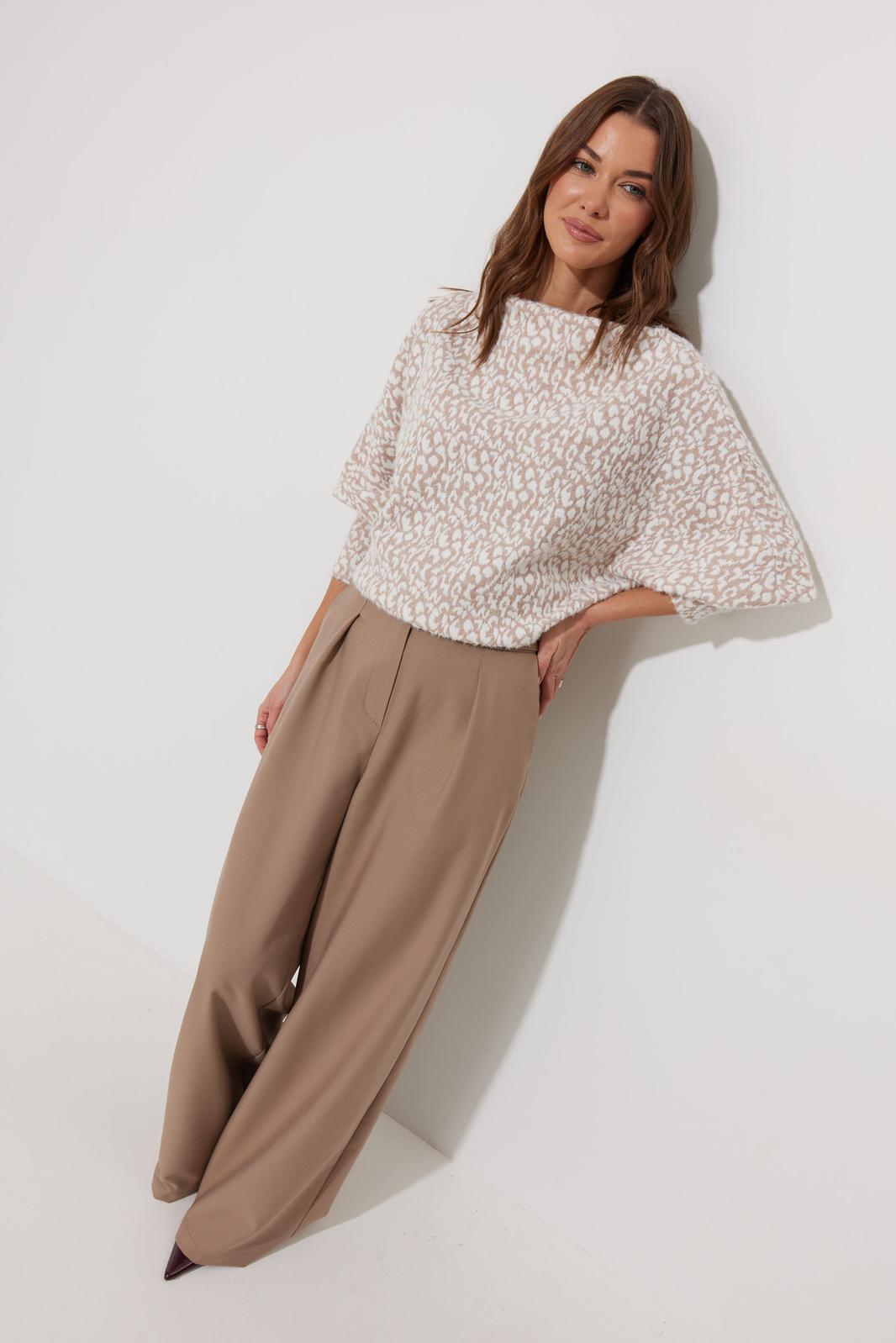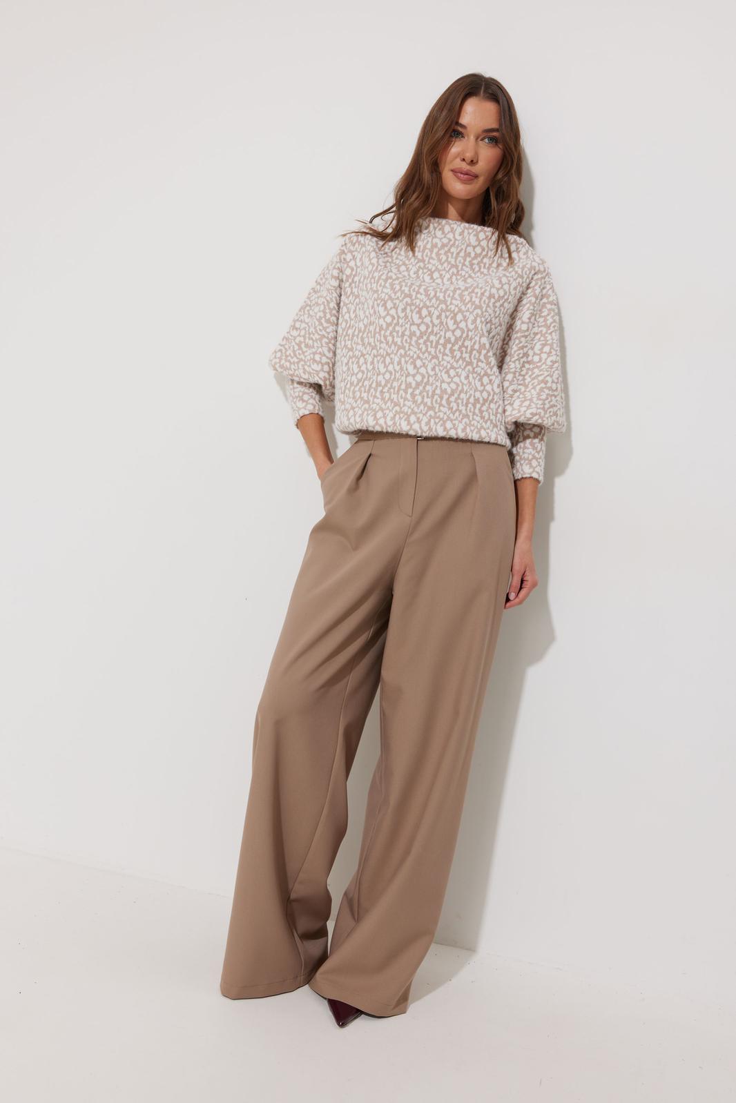 Джемпер прямого силуэта из комфортного трикотажного полотна. Горловина – цельнокроеная стойка. Рукав цельнокроеный, по низу на манжете. По низу джемпера – притачная планка.