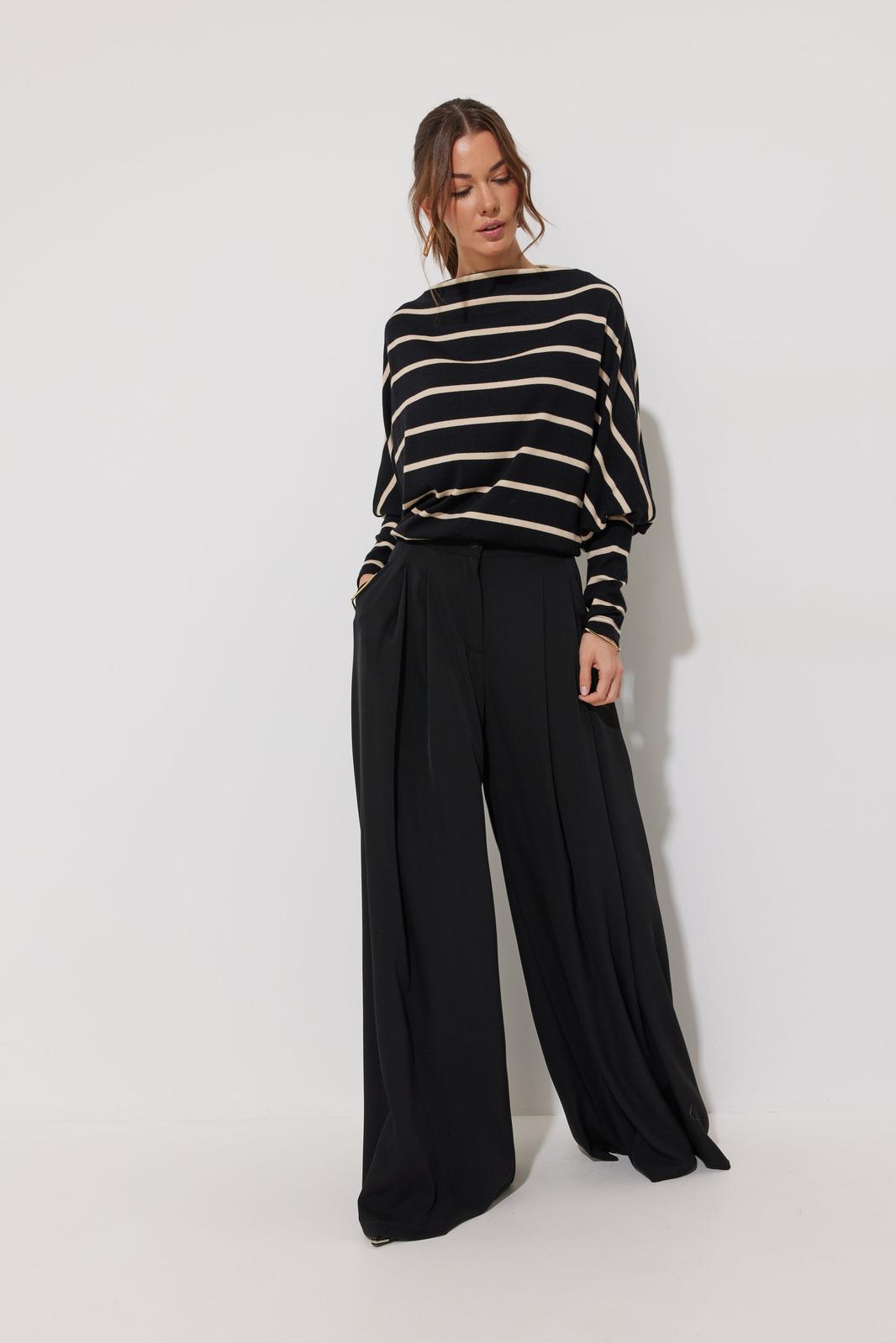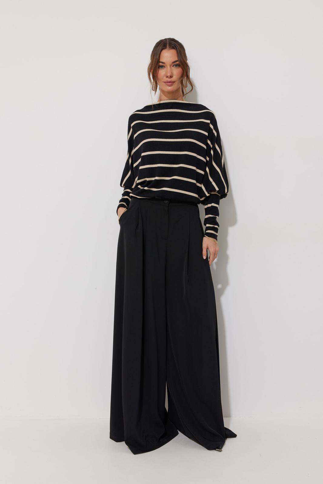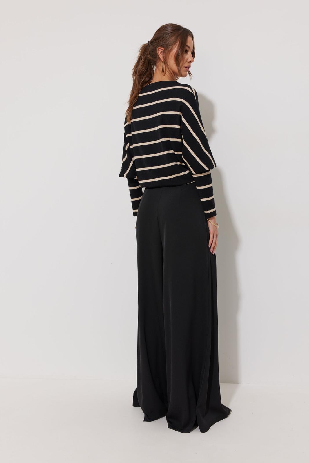 Джемпер полуприлегающего силуэта из трикотажного полотна. Горловина - цельнокроеная стойка. Рукав цельнокроеный, с подрезом ниже локтя и узкой длинной манжетой. По низу джемпера – притачная планка.