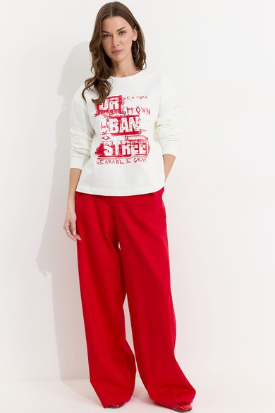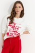 Джемпер прямого силуэта из трикотажного полотна. Горловина округлая. Рукав со спущенной линией плеча, по низу манжета. По переду дизайнерская печать.