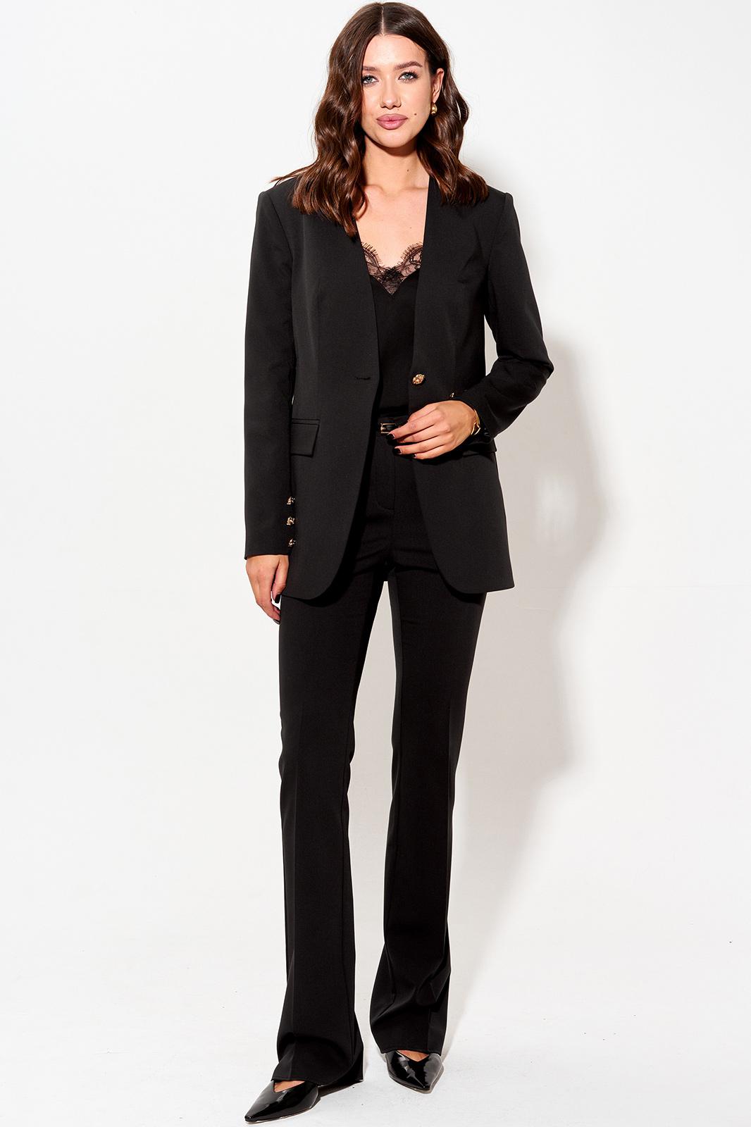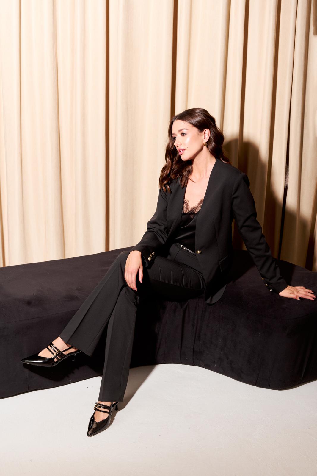 Нарядный костюм, состоящий из жакета и брюк.