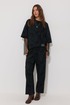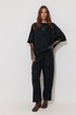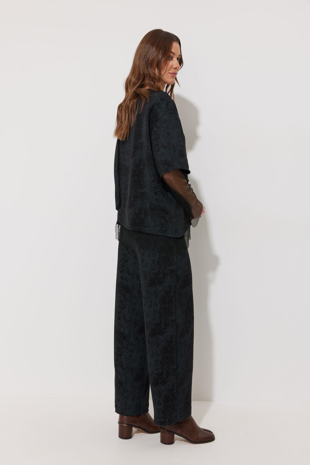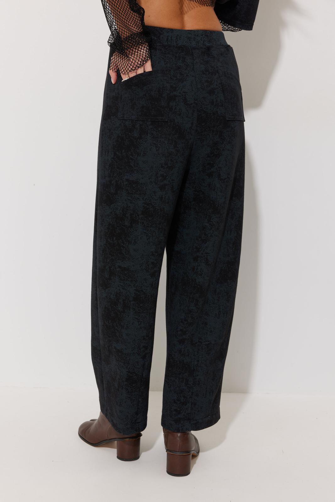 Брюки прямого силуэта зауженные книзу из трикотажного полотна. По верху брюк притачной пояс, по переду имитация гульфика. На передних и задних половинках брюк по низу вытачки. На задних половинках брюк накладные карманы. Обращаем ваше внимание, что фурнитура может отличаться от фото.