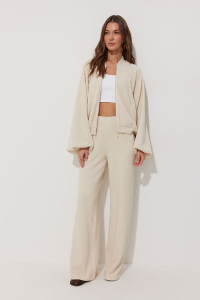 Брюки прямого силуэта из комфортного трикотажного полотна. По верху брюк резинка.