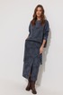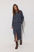 Джемпер прямого силуэта с фигурным низом из трикотажного полотна. Горловина округлая. Рукав со спущенной линией плеча, по низу на манжете. Джемпер со смещенным боковым швом.