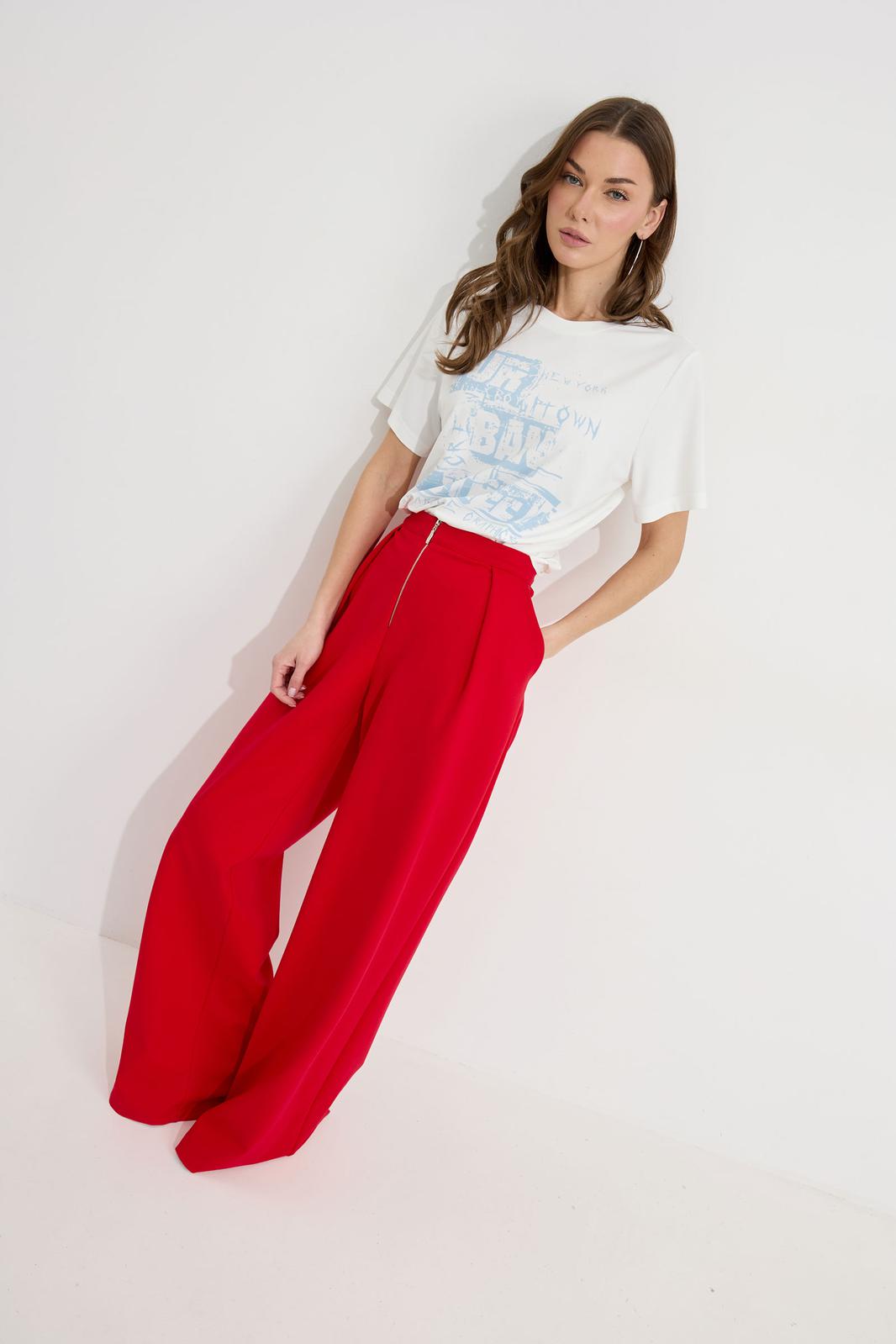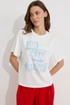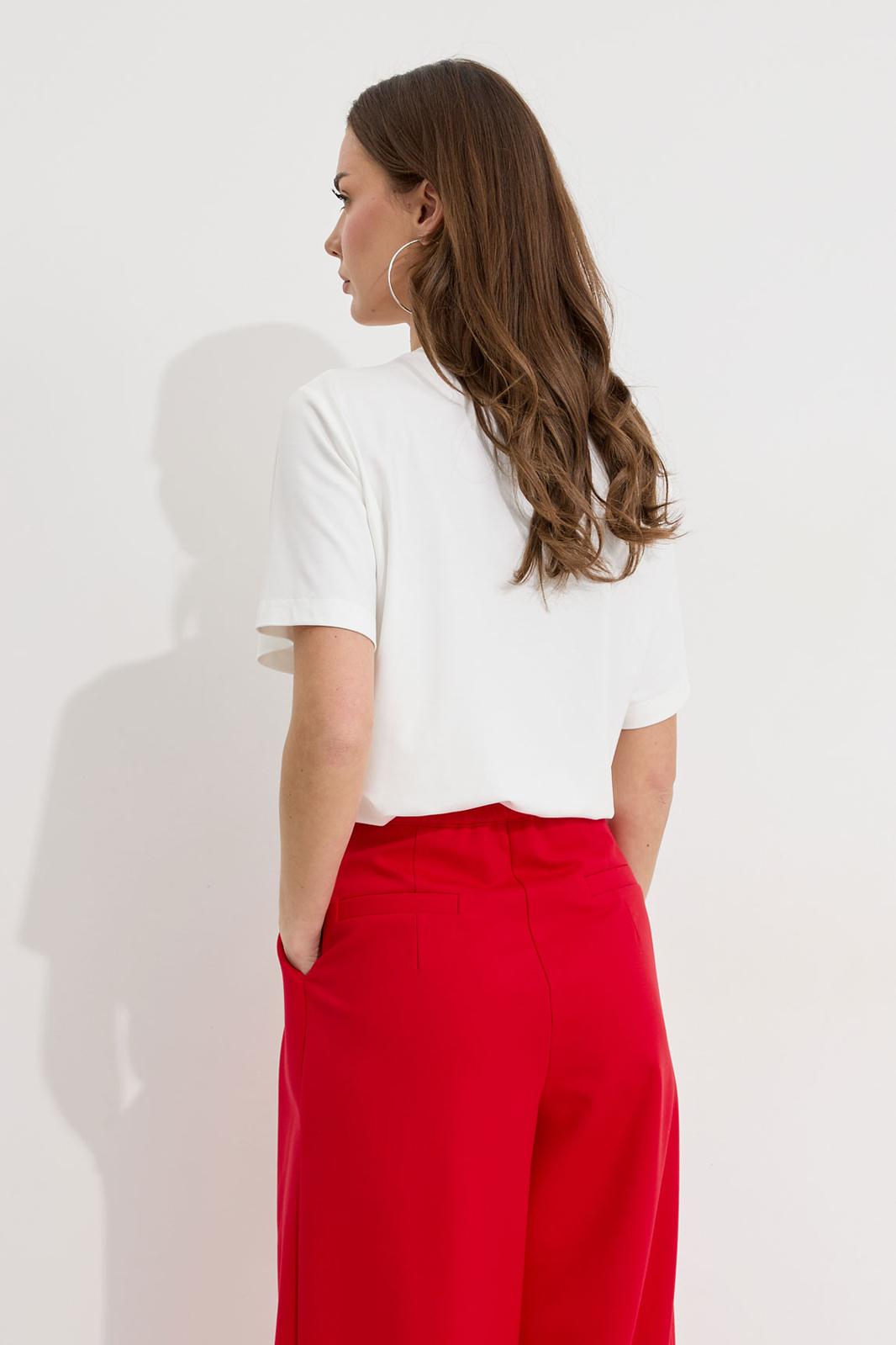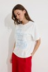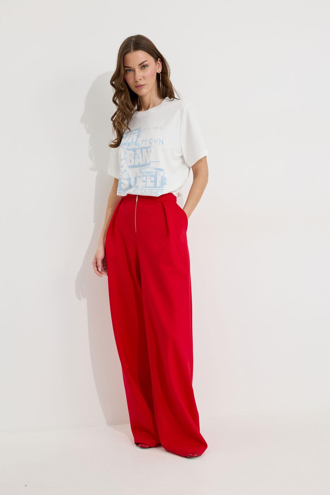 Джемпер полуприлегающего силуэта из трикотажного полотна. Горловина округлая. Рукав втачной короткий. По переду дизайнерский принт.