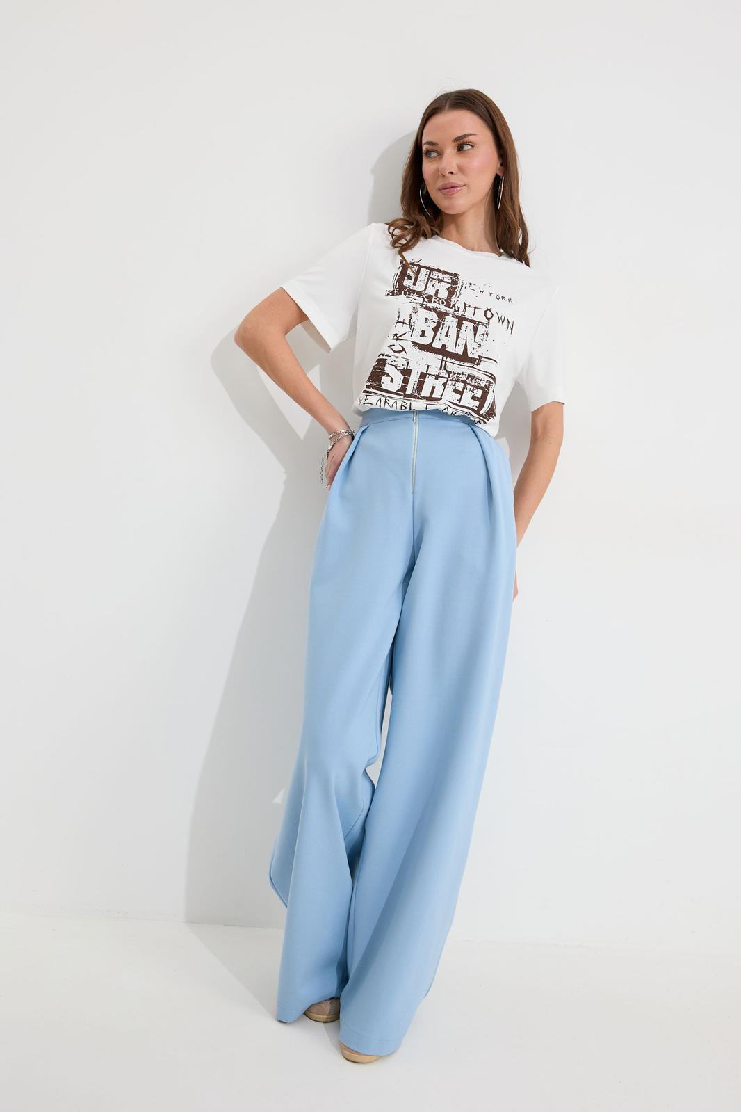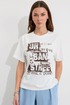 Джемпер полуприлегающего силуэта из трикотажного полотна. Горловина округлая. Рукав втачной короткий. По переду дизайнерский принт.