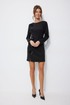 Нарядное платье из трикотажного полотна, длина мини. Платье прилегающего силуэта с небольшим расширением по низу. С рельефами по переду и спинке. По переду слева вдоль рельефа пришивной декор «цветы». По переду слева рельеф с разрезом по низу. Рукав втачной, длинный. Вырез горловины «лодочка». Потайная молния в среднем шве спинки. Обращаем Ваше внимание, что декор может незначительно отличаться от фото.