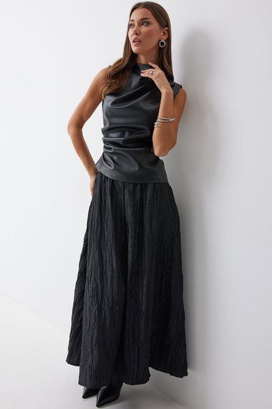 Юбка- полусолнце из жатой ткани, на притачном декоративном поясе (эластичной тесьме).