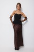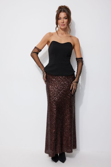 Юбка полуприлегающего силуэта расширенная книзу длиной макси из ткани с пайеткой. Юбка с резинкой по линии талии. Юбка на подкладке.
