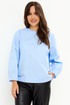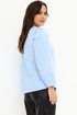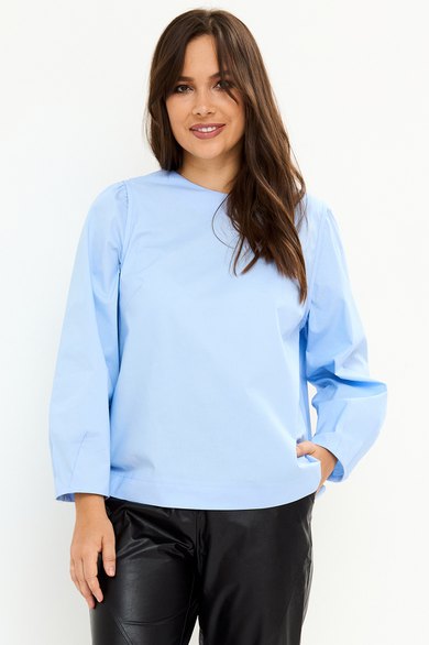Стильная блуза свободного кроя. Выполнена из хлопковой ткани. Застежка по спинке на потайную молнию. Рукав втачной, снизу для придания объема дополнен защипами . Длина блузы от плечевого шва 63см. Длина рукава 58см.