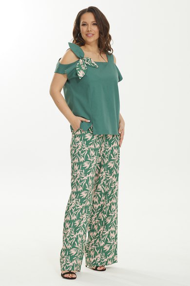 - Тип ткани: Блуза: Лен 55, Хлопок 45%; Брюки: Вискоза 100%