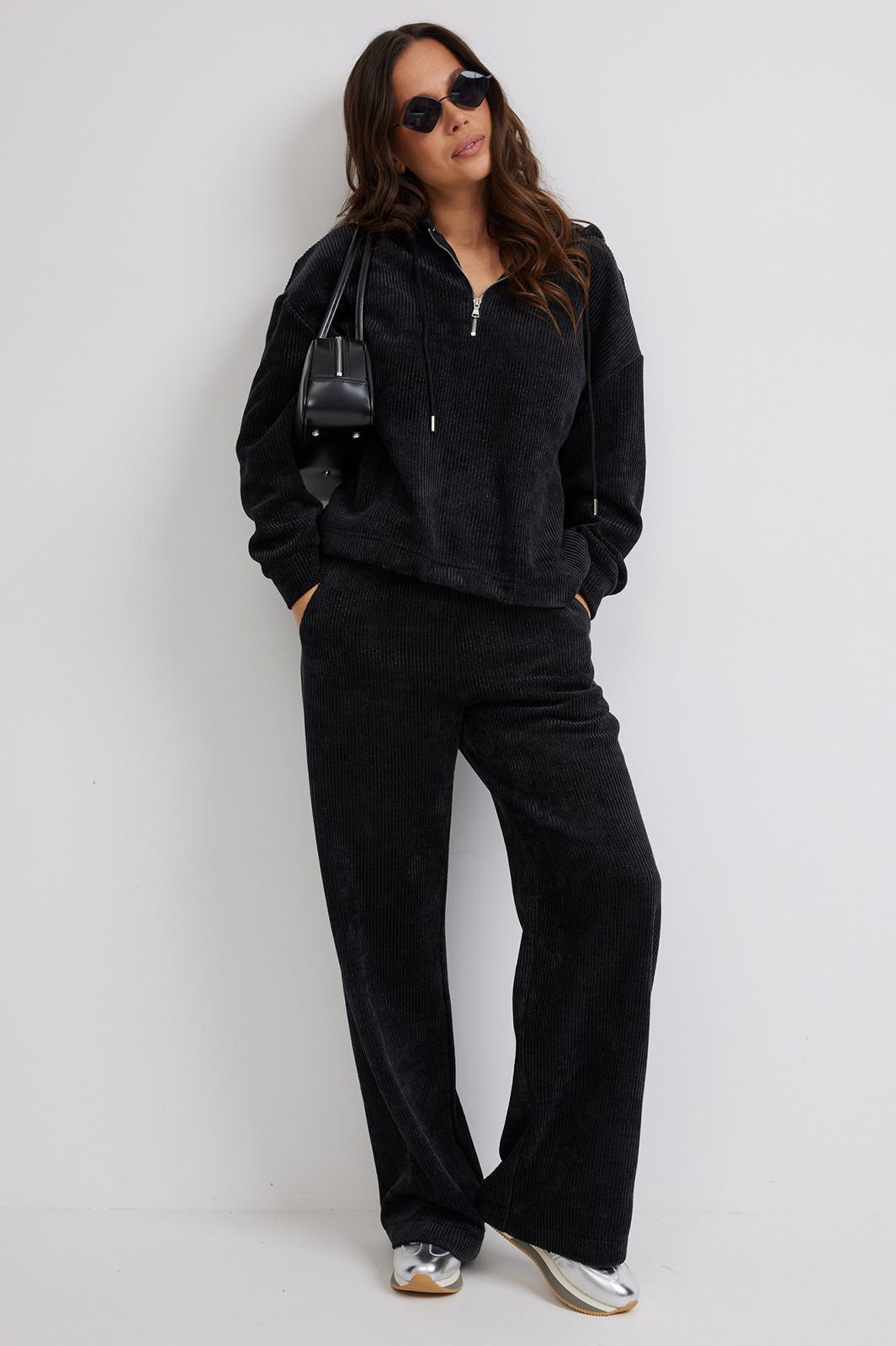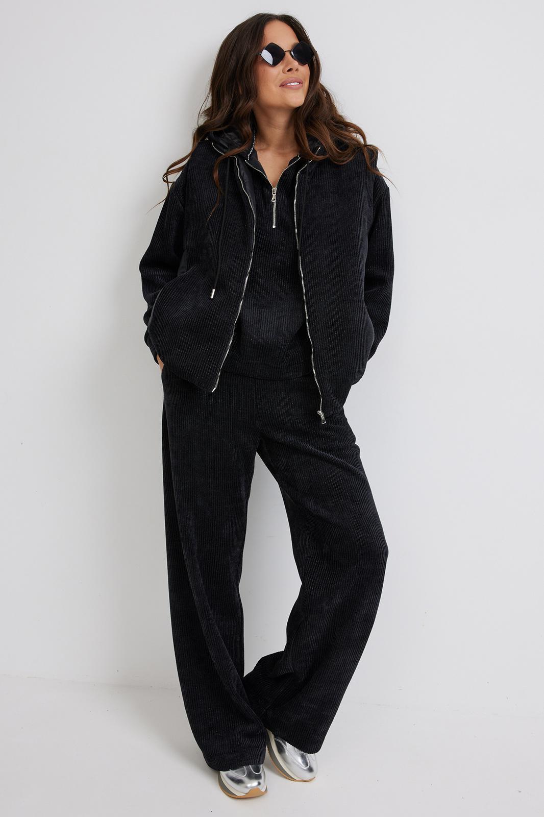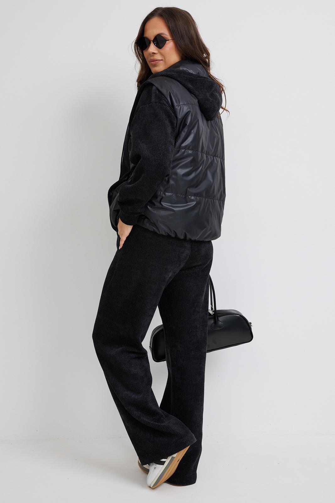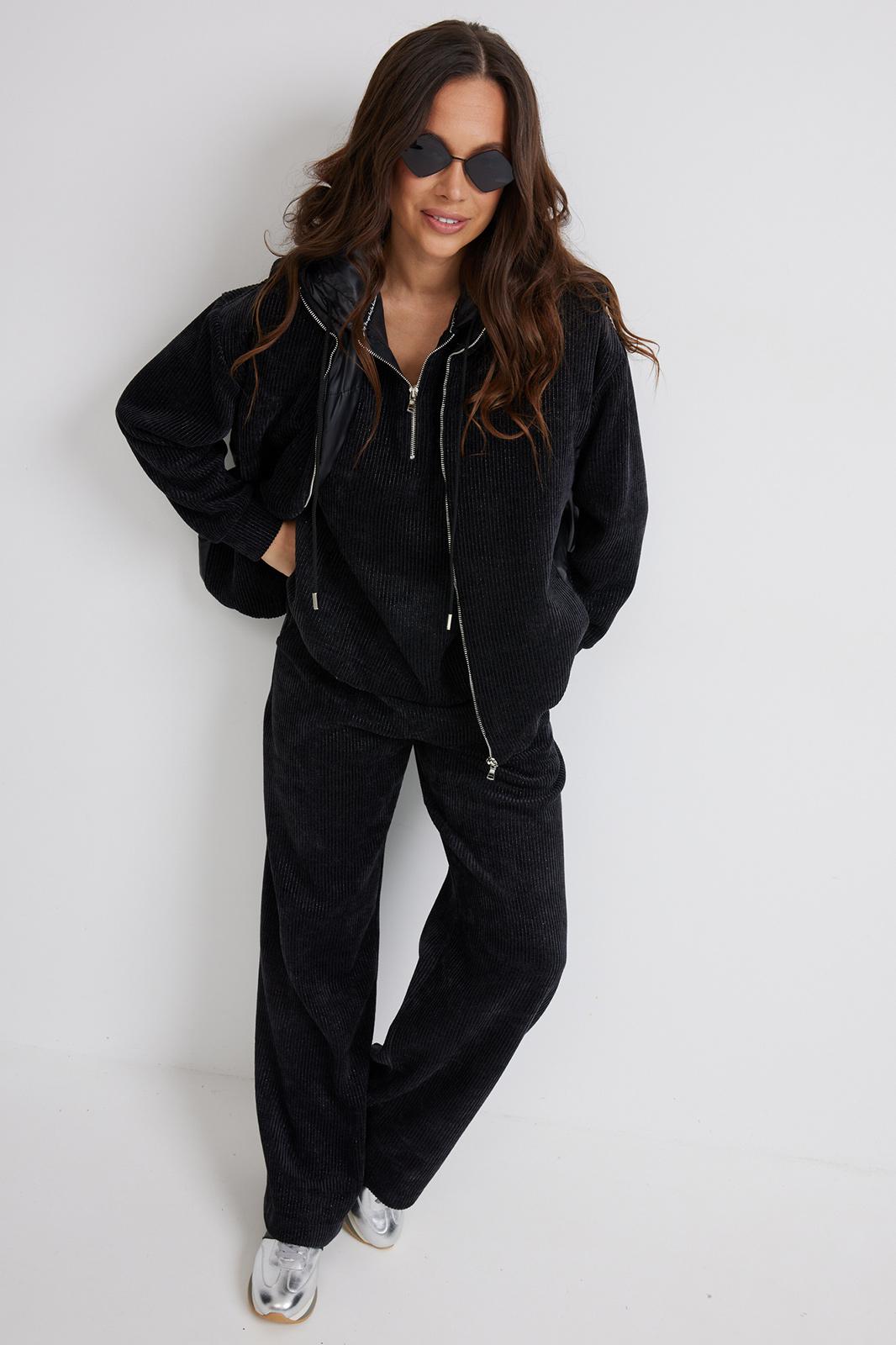 Стильный и уютный комплект из утепленного жилета, худи и брюк, выполненных из фактурного трикотажного полотна (штрукс). Жилет свободного прямого кроя с центральной застежкой на металлическую молнию. Горловина обработана стойкой. Перед жилета выполнен из трикотажного полотна, спинка выполнена из плащевой ткани. Жилет дополнен удобными боковыми карманами. Худи свободного прямого кроя со слегка спущенным рукавом. Дополнено уютным капюшоном и застежкой на металлическую молнию. Для придания формы по низу расположена кулиска на резинке с фиксаторами. Так же худи дополнено удобными карманами. Брюки прямого свободного кроя, с притачным поясом, дополненным эластичной тесьмой. Посадка средняя. По бокам брюки дополнены удобными карманами.