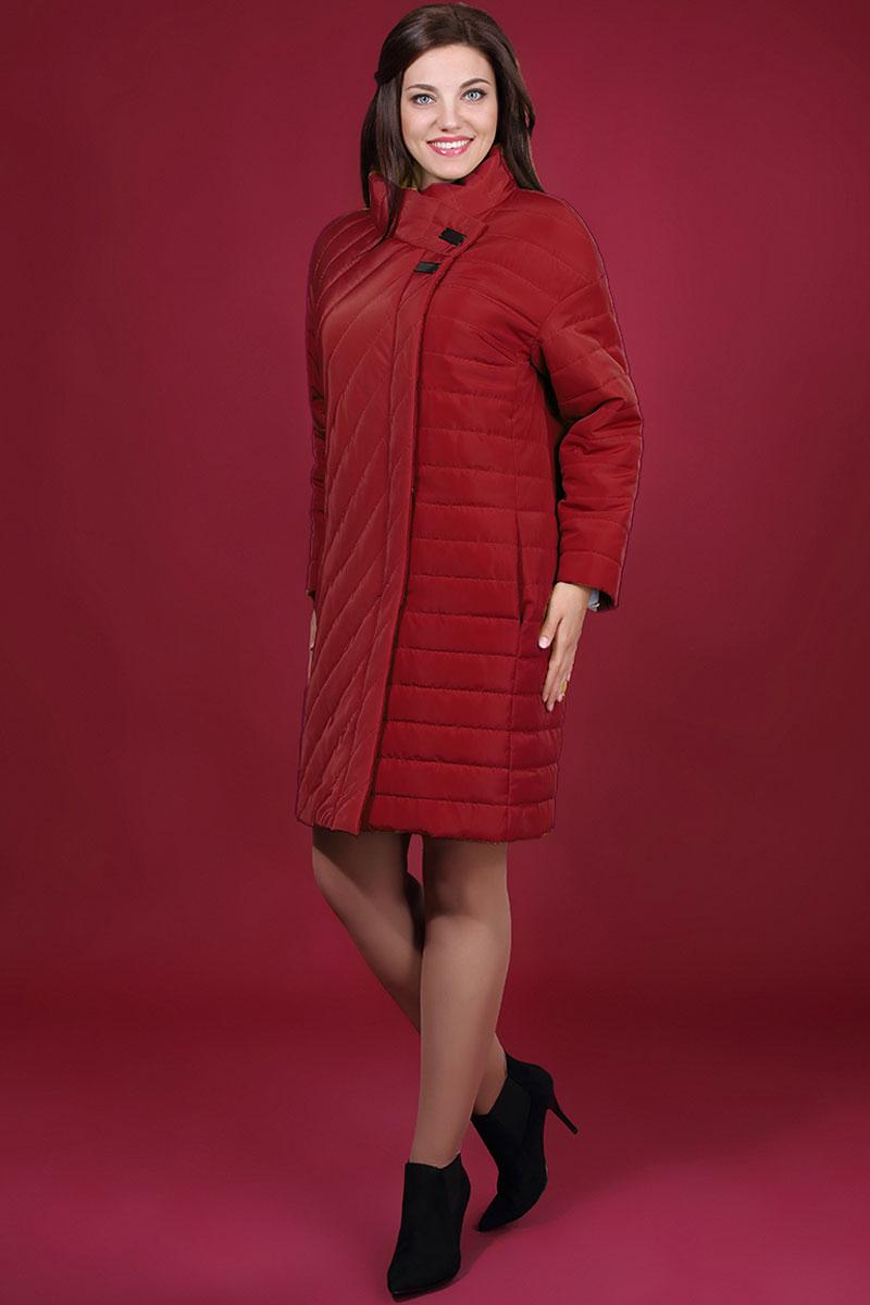 Комфортное, легкое и теплое женское пальто из стеганой ткани на утеплителе «синтепон». Спинка со средним швом. Перед с ассиметричной застежкой и воротником стойкой. Удобный рукав со спущенной проймой. В рельефных швах переда карманы.