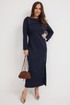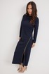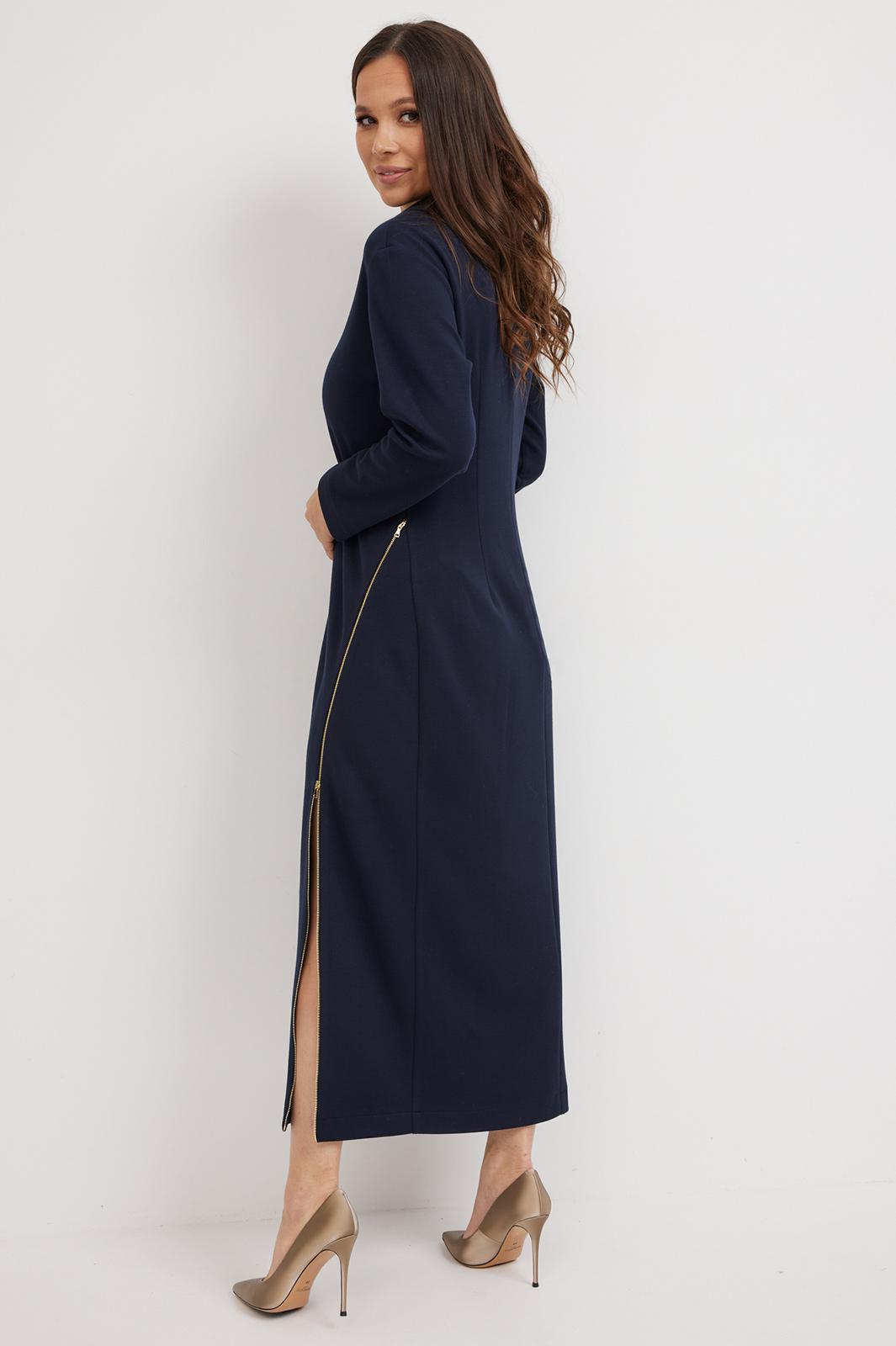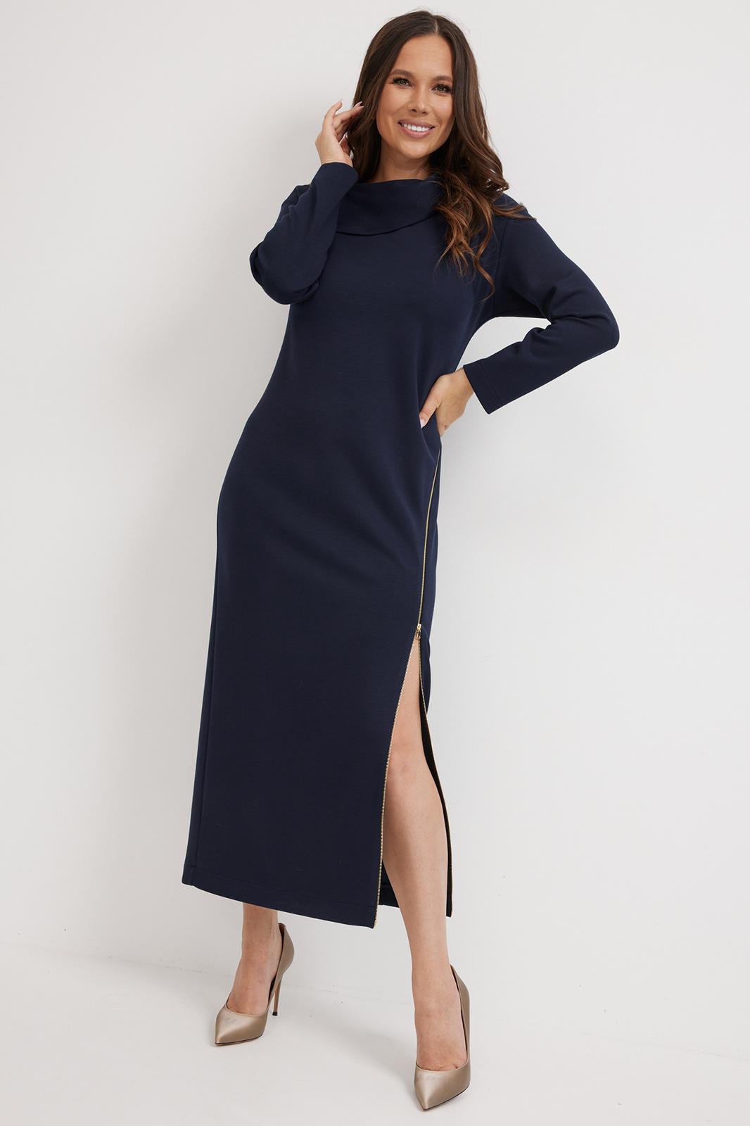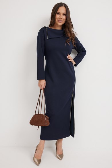 Элегантное и стильное платье миди полуприлегающего силуэта. Выполнено из приятного к телу комфортного гладкого трикотажного полотна. Рукав втачной, полной длины. Украшением платья являются функциональные тесьмы молнии. С их помощью можно стильно уложить воротник и отрегулировать вырез платья. Из лаконичного базового платье легко трансформируется в стильное и сексуальное. Длина платья от плечевого шва 127 см. Длина рукава 60 см.