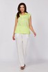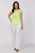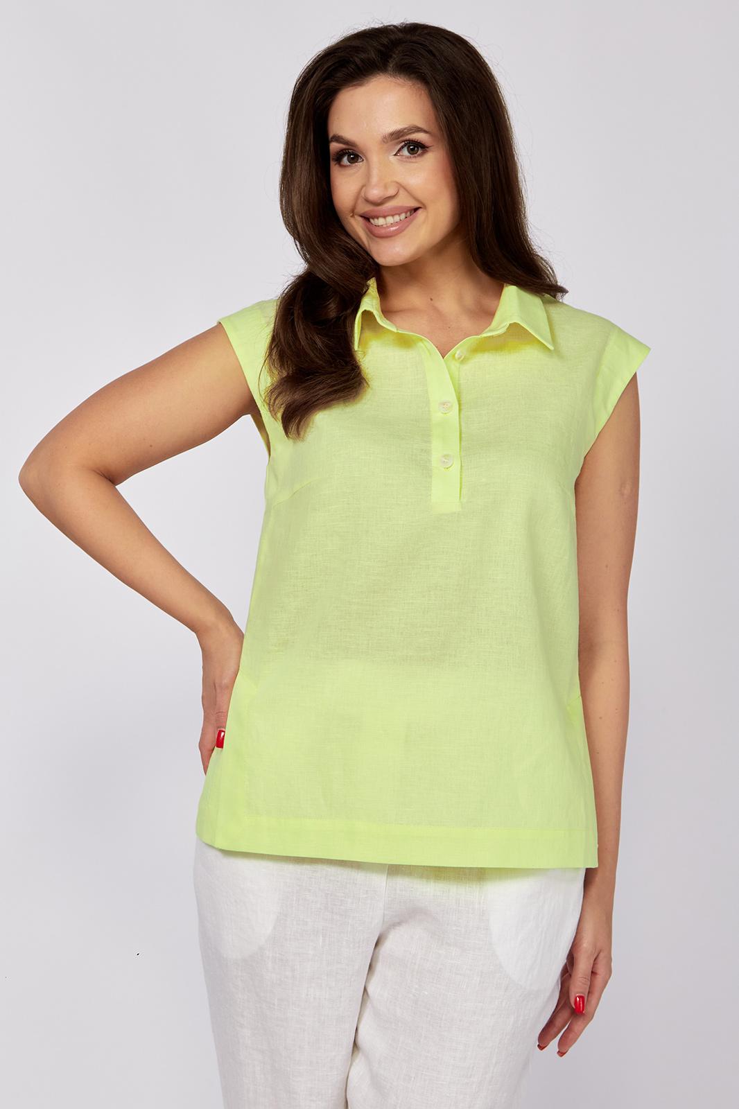 Блуза полуприлегающего силуэта, плечо слегка спущено. В боковой части переда шлицы по низу, застегивающиеся на 4 пуговицы, воротник отложной со стойкой.