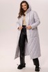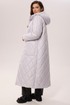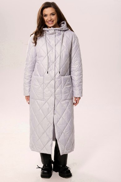 Пальто прямого силуэта. Линия плеча спущенная. Карманы накладные. Капюшон с декоративным шнуром. Застёгивается на потайные кнопки