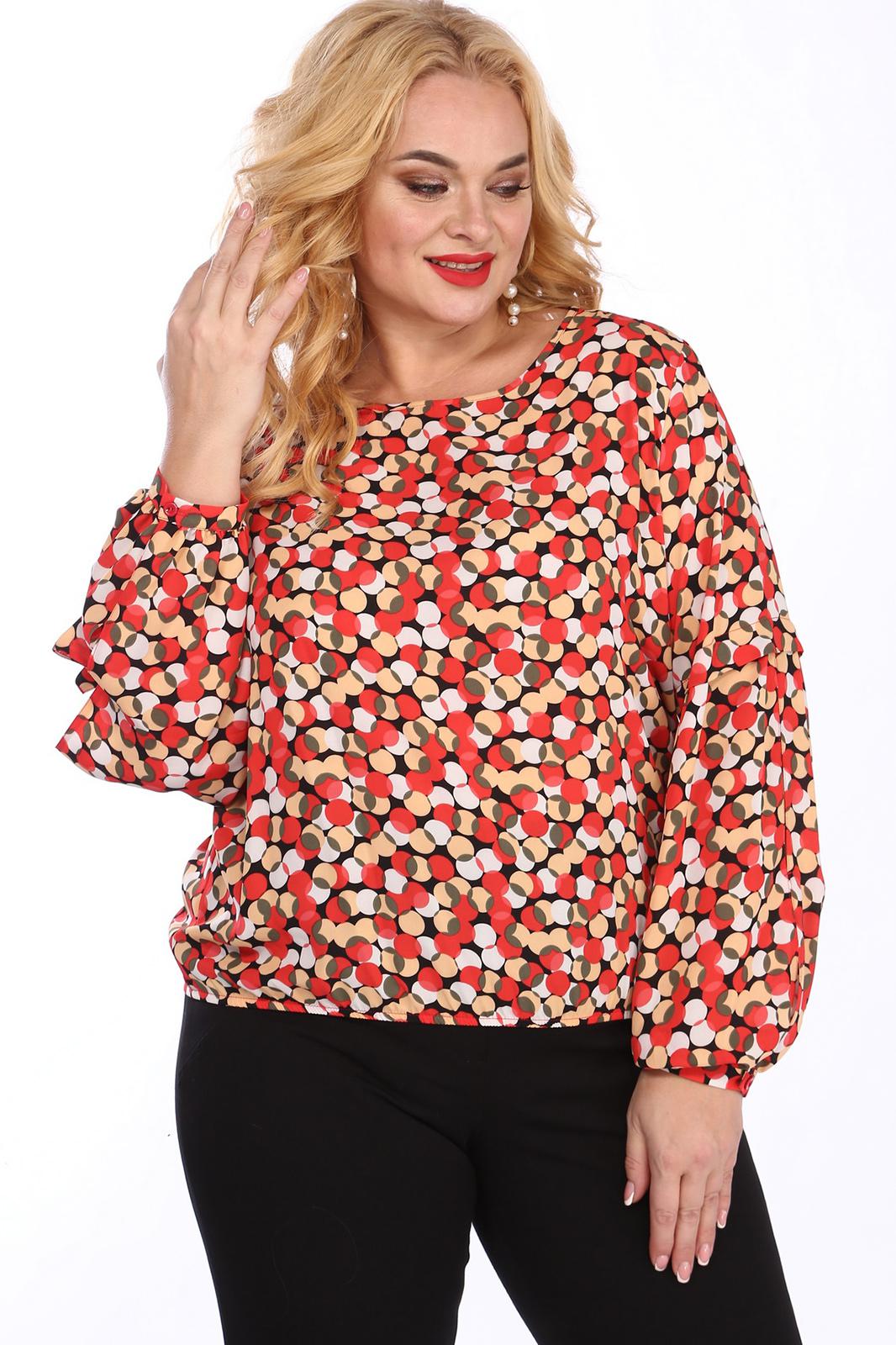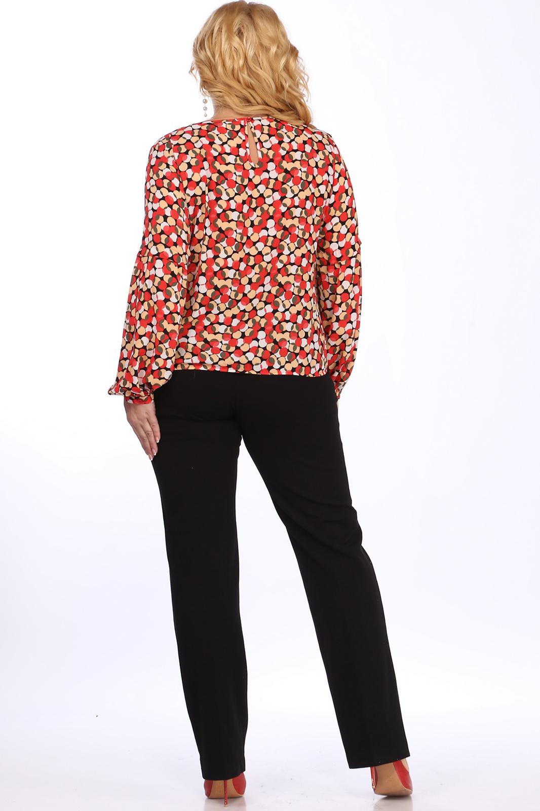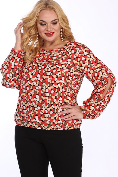 Блузка женская прямого силуэта, с втачными одношовными рукавами. Рукав состоит из двух деталей; в нижней части – разрезы, обработанные встык, по низу – притачная манжета с петлей и пуговицей. Перед цельный. Горловина округлая, окантована косой бейкой. Спинка цельная, с застежкой в верхней части на навесную петлю и пуговицу. Низ изделия собран на эластичную резинку. Без плечевых накладок. Рост модели 173 см.