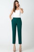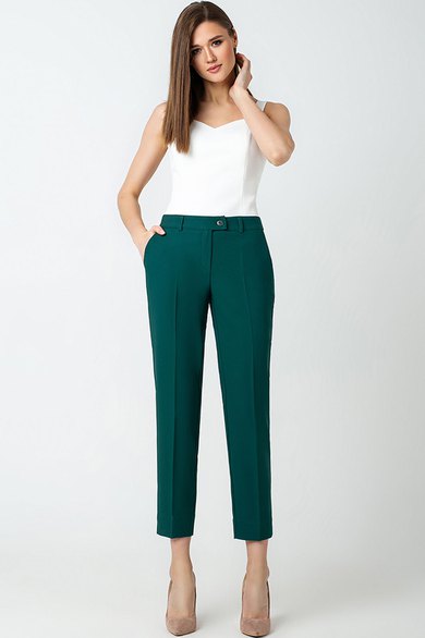 Брюки женские классические, слегка зауженные к низу, с внешней стороны внизу по боками небольшие разрезы. В брюках застёжка на молнию, петлю и пуговицу. Так же спереди имеются боковые карманы, а на задней половинке изделия карманы – обманки. Брюки отлично подойдут для повседневной носки