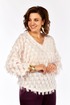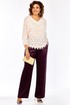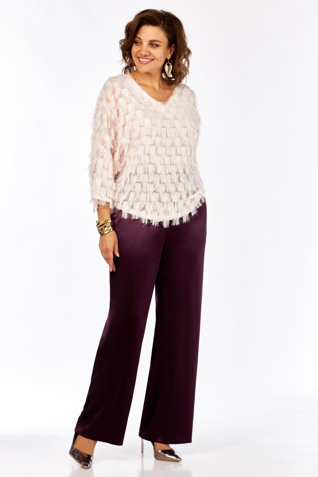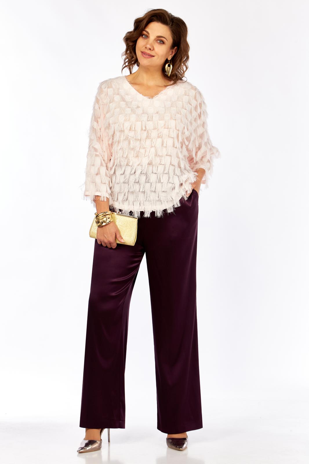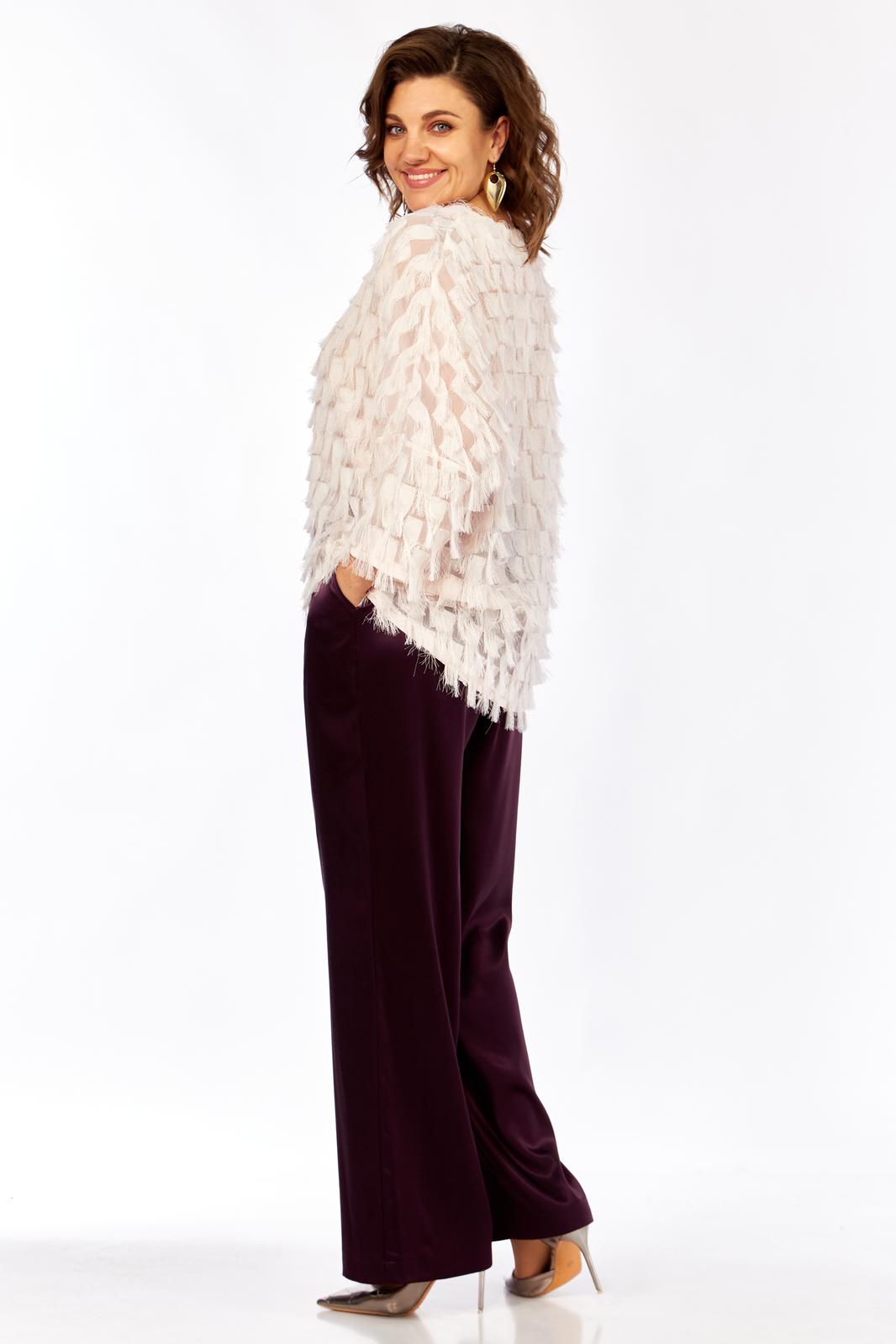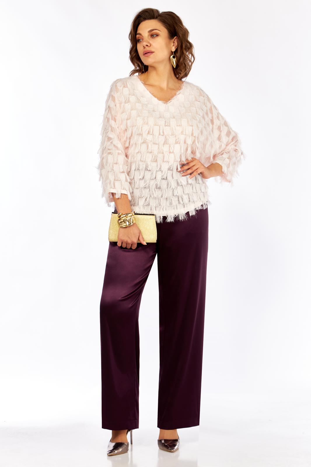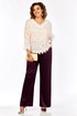 Комплект женский 2-х предметный, состоящий из брюк и блузки. Брюки-палаццо, карманы в боковых швах, отрезной пояс с резинкой по спинке. Блузка свободного силуэта с V-образным вырезом горловины по переду. Рукав летучая мышь. Спинка со средним швом, спинка длиннее переда.