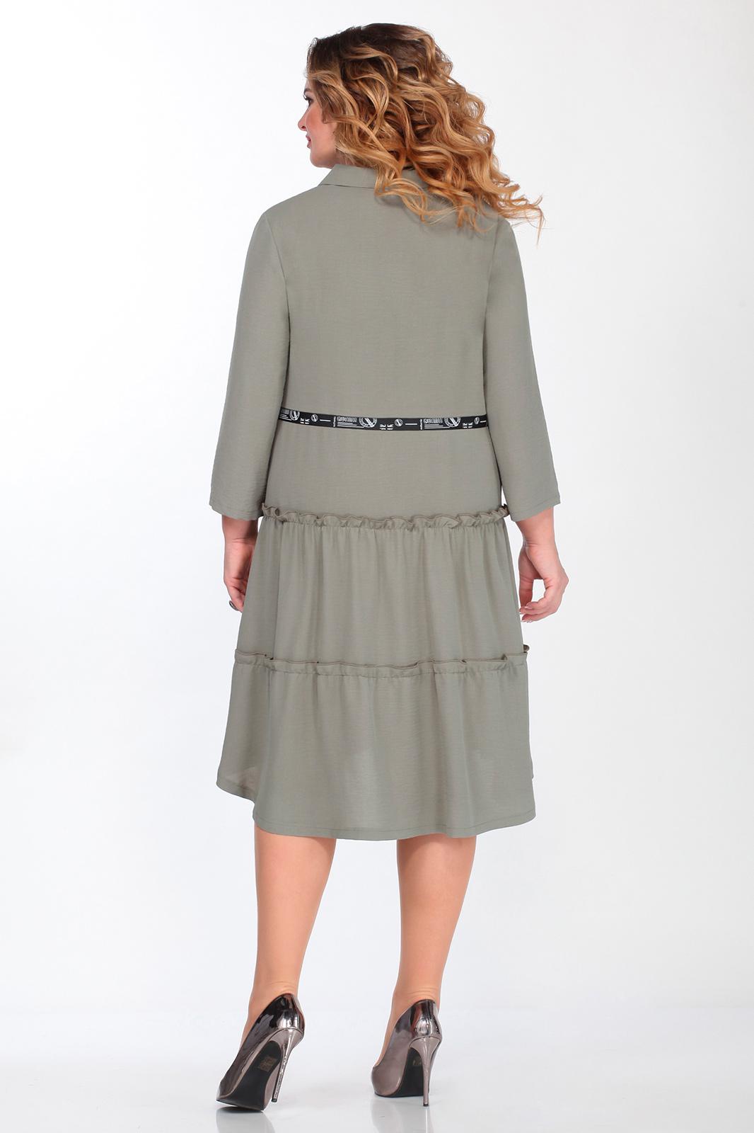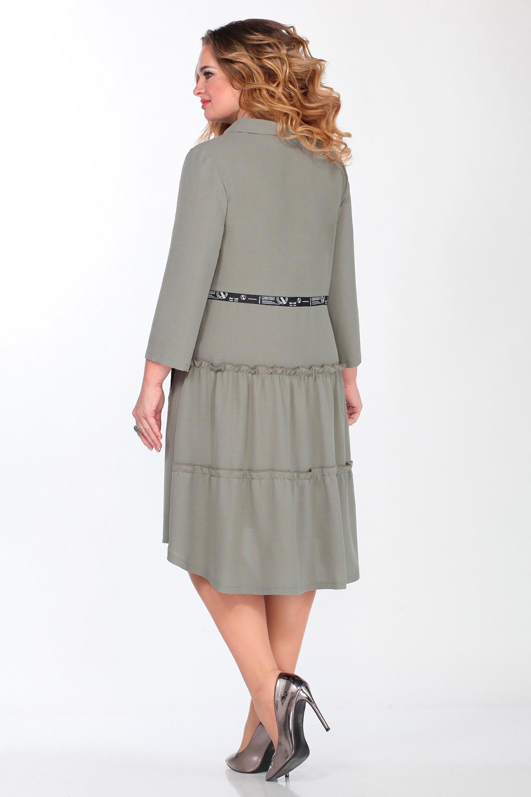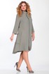 Платье женское, силуэт трапеция. Застежка центральная на молнию. Воротник стойка. По переду прорезные карманы с листочкой. По спинке два присборенных волана и декоративная тесьма настрочена по линии талии. Рукав втачной одношовный.