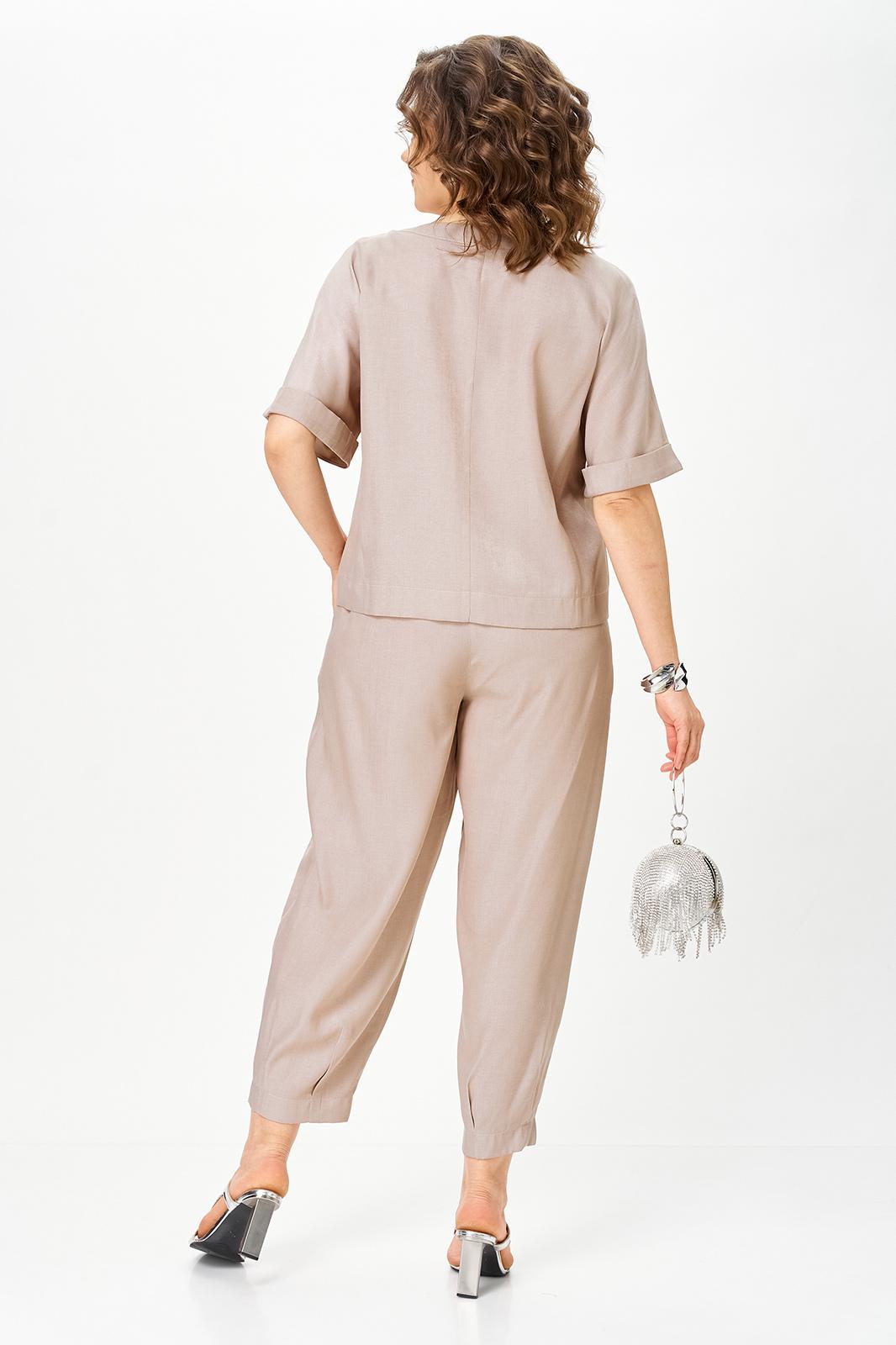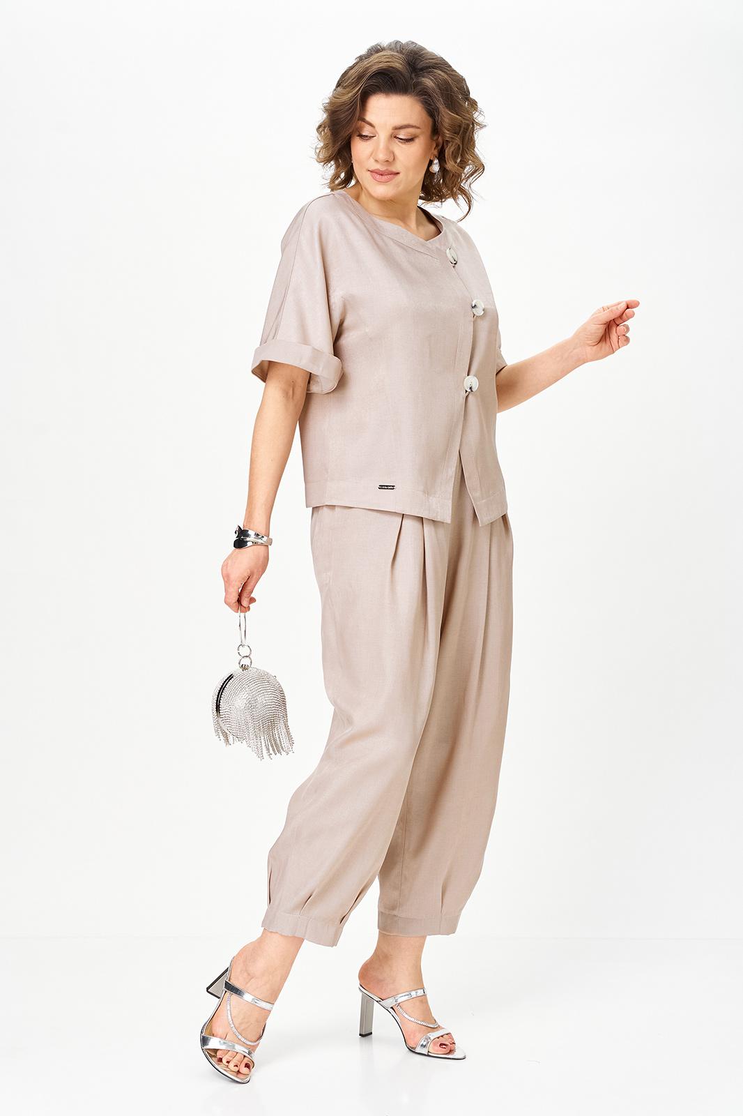 Свободный крой не утяжеляет фигуру, а наоборот делает силуэт лёгким и современным. Костюм комфортен в течение всего дня и идеально подходит для тёплого сезона.